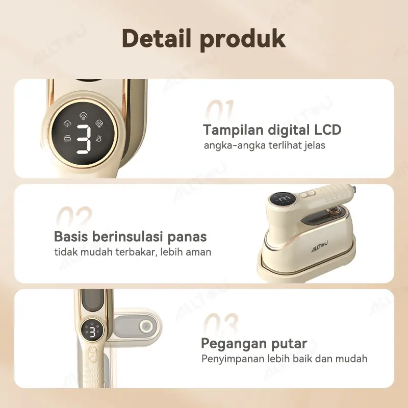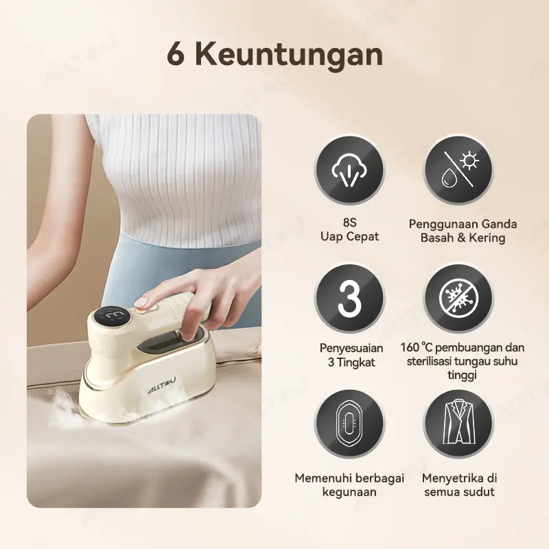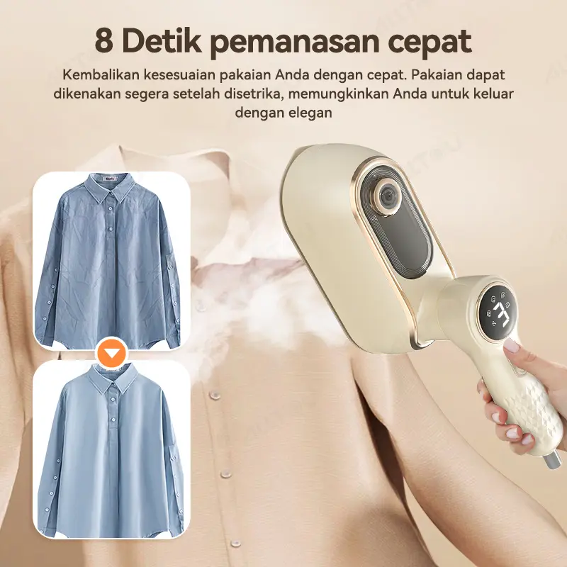 ·Dengan daya tinggi 1200W, mulai menyetrika pakaian dalam 8 detik.