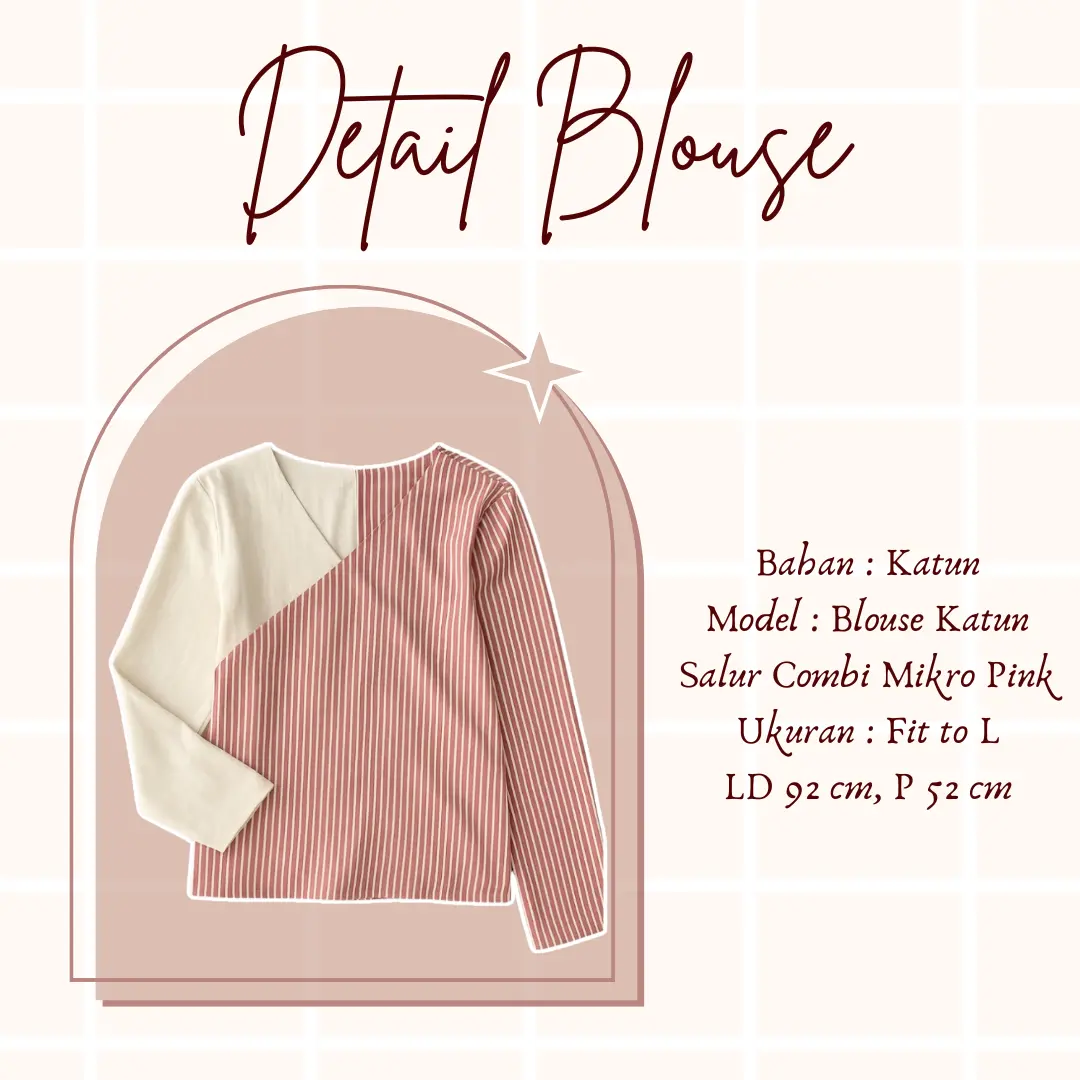 - Model : Blouse Yorin Katun Salur Combi Mikro Pink