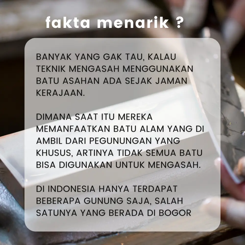 Batu asahan asli alam dari gunung, cocok untuk mengasah pisau, golok, gunting, parang, dan alat perkakas lainnya. Packing produk aman dengan dus tebal, terlindungi dari kerusakan selama pengiriman. Batu asahan ini adalah alat sempurna untuk mengasah pisau dan golok dengan hasil maksimal.