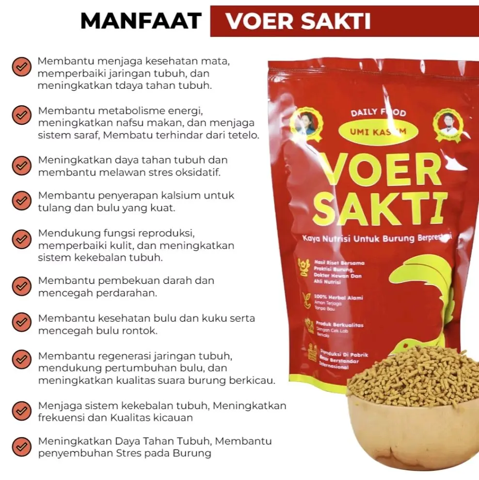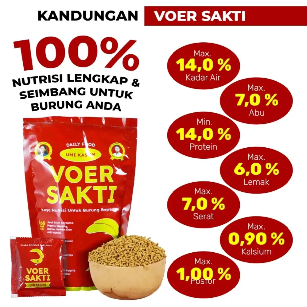 - Voer Sakti memiliki kemasan Pouch dan Sachet berlapis alumunium. Untuk menjaga kualitas voer agar tidak terlalu lama terkena udara dan menghindari efek apek dan berjamur pada voer.