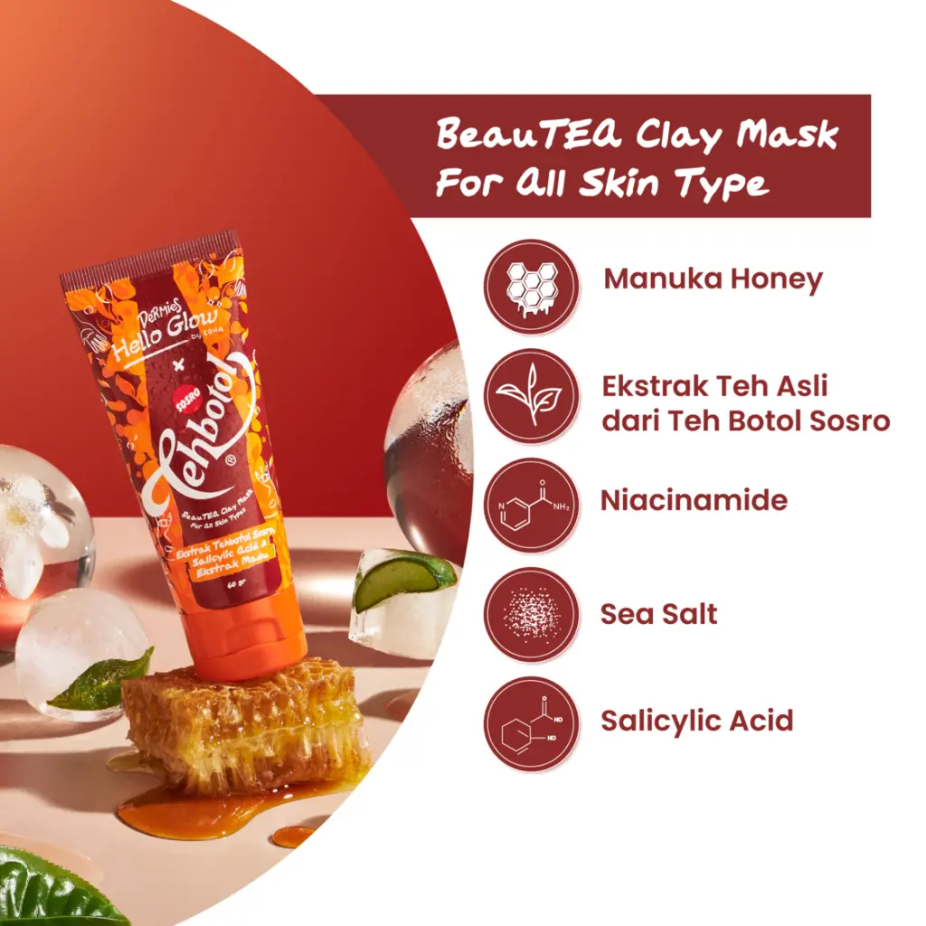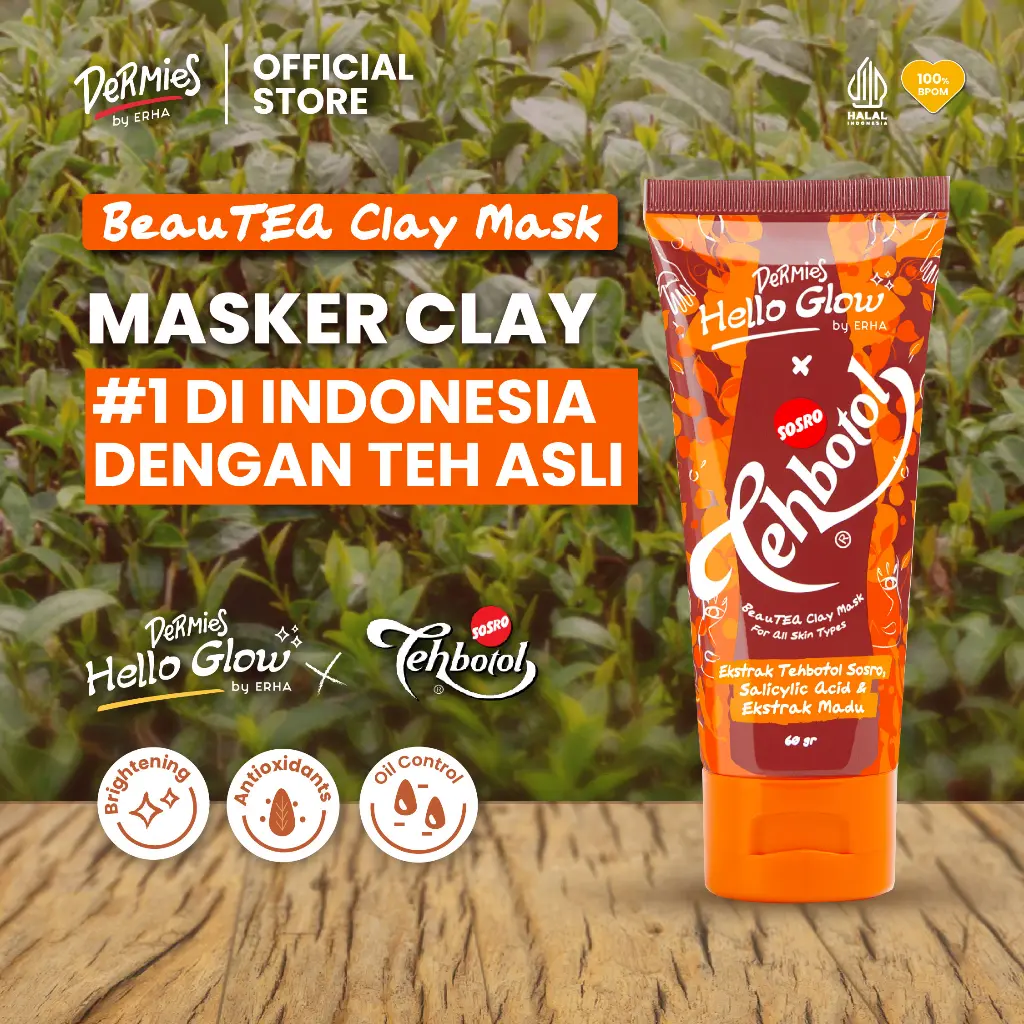 DERMIES Hello Glow BeauTEA Clay Mask ft. Sosro 60gr - Masker Wajah