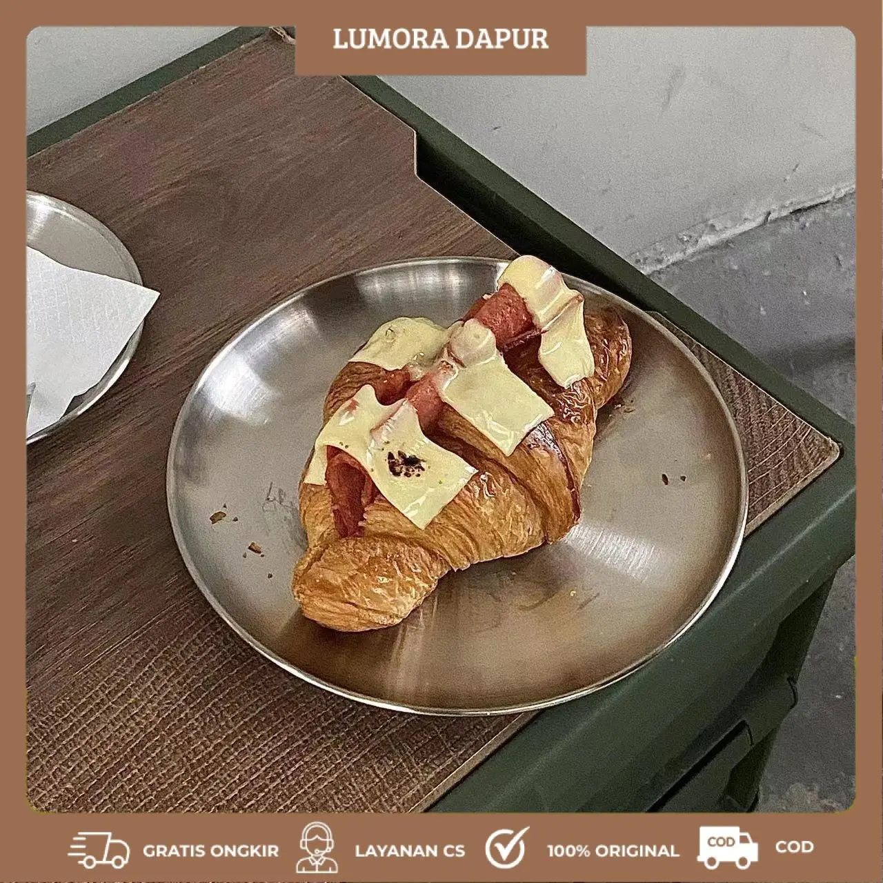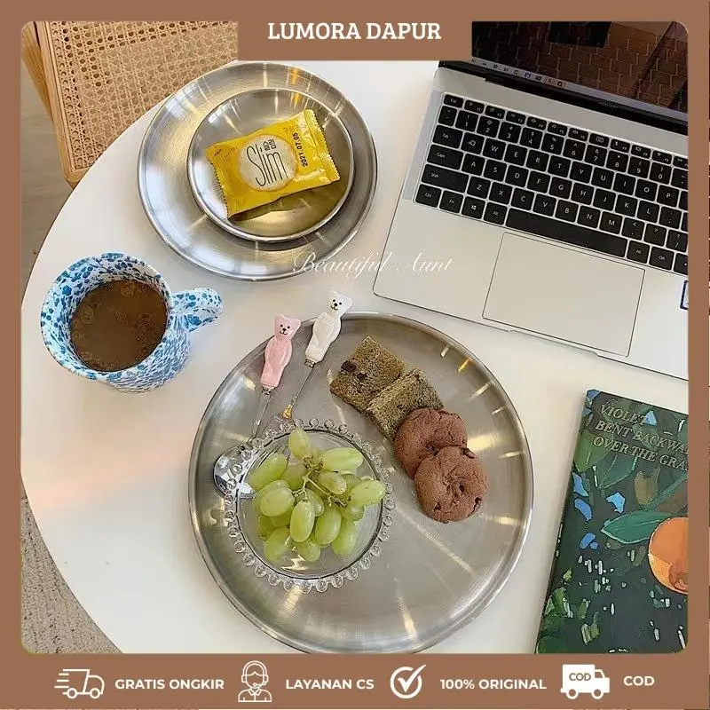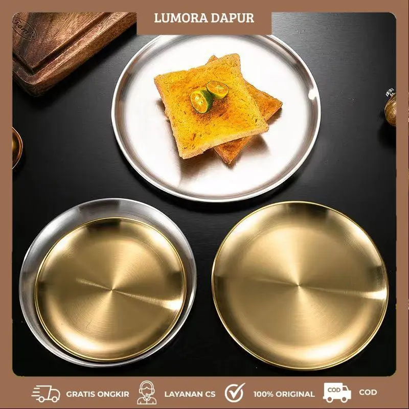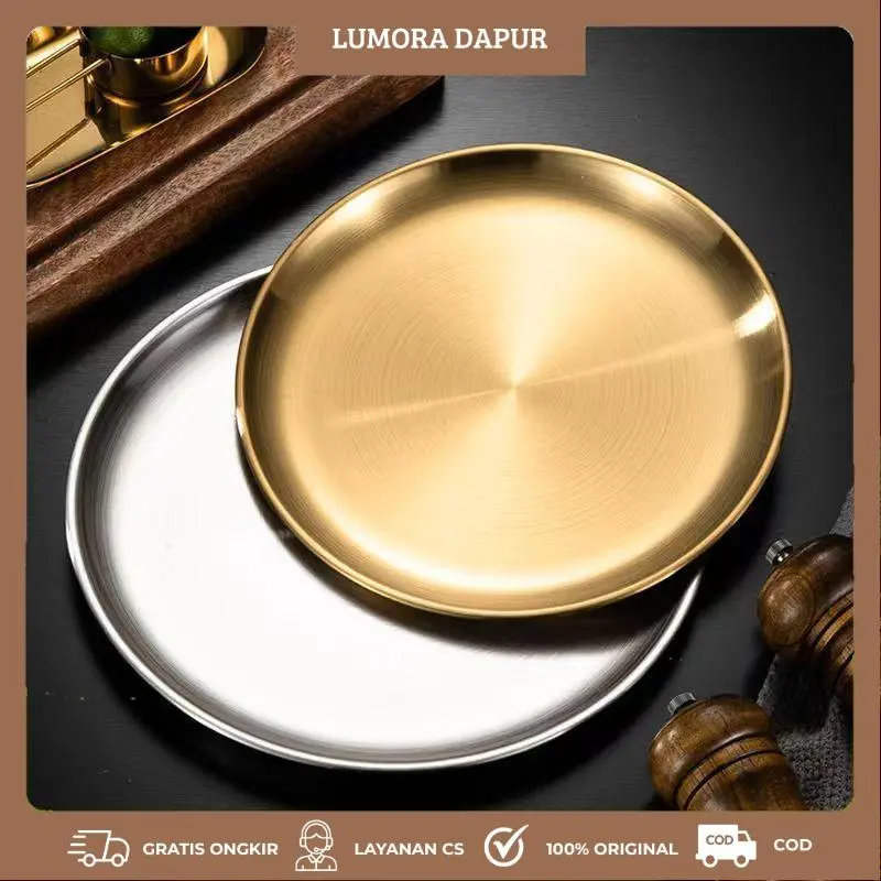Tray Sultan Aesthetic /Piring Makan Emas / Piring Dekorasi Stainless Steel European Gold / Piring Mewah Bahan Anti Karat Desain Nampan Makanan Roti I PB-15 & PB-16BBQ Buah /
