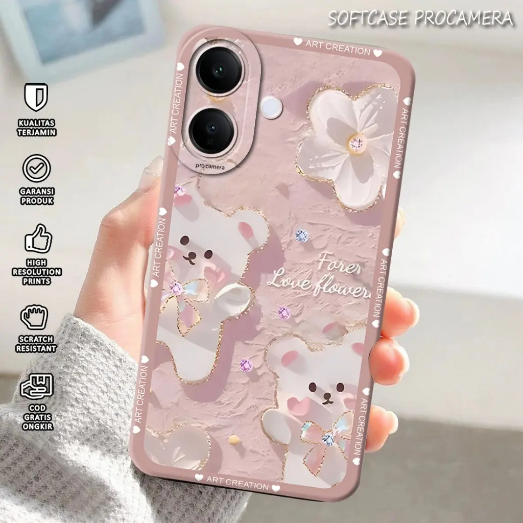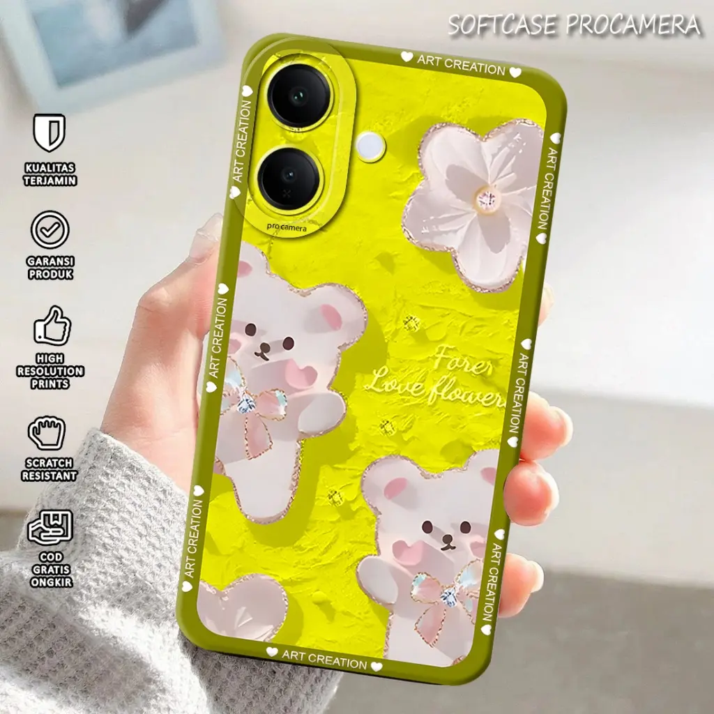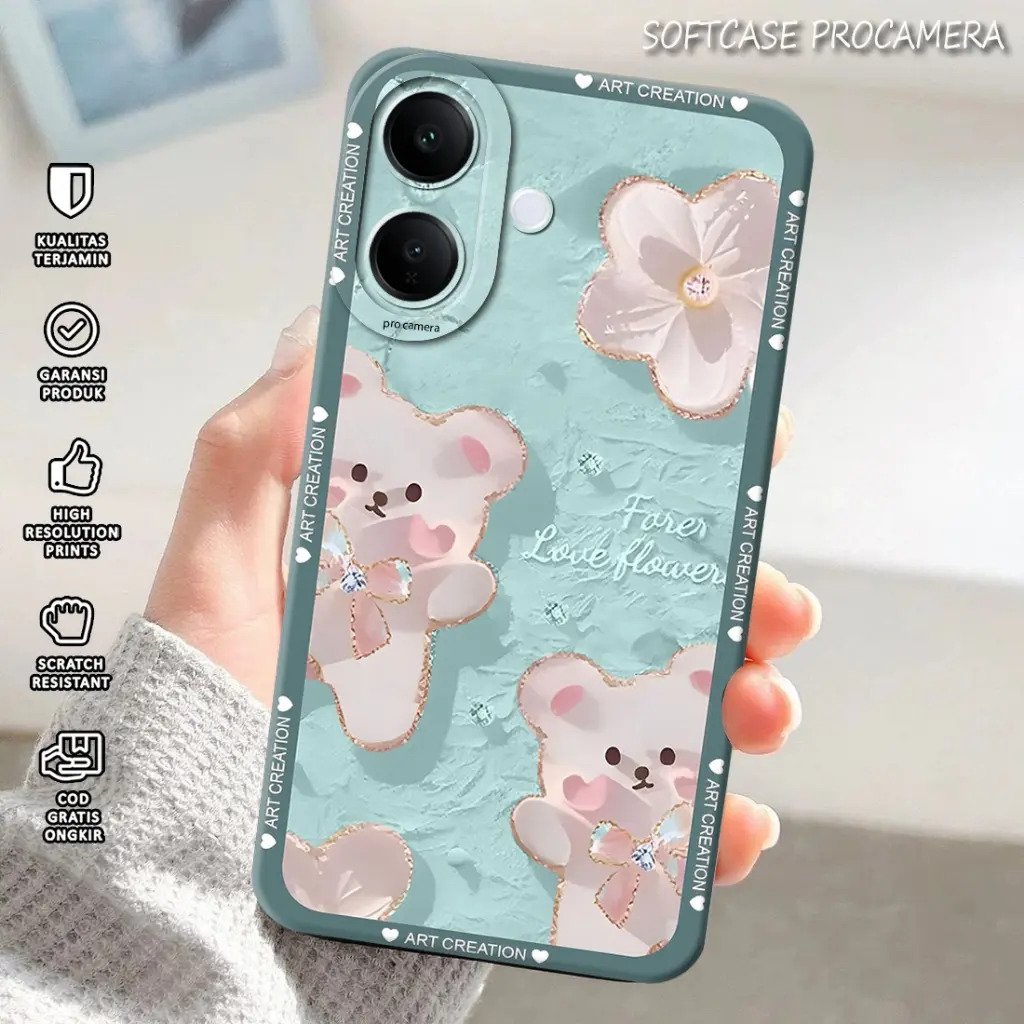 Desain pada softcase dicetak menggunakan mesin cetak UV, memberikan hasil yang tajam dan tahan lama.