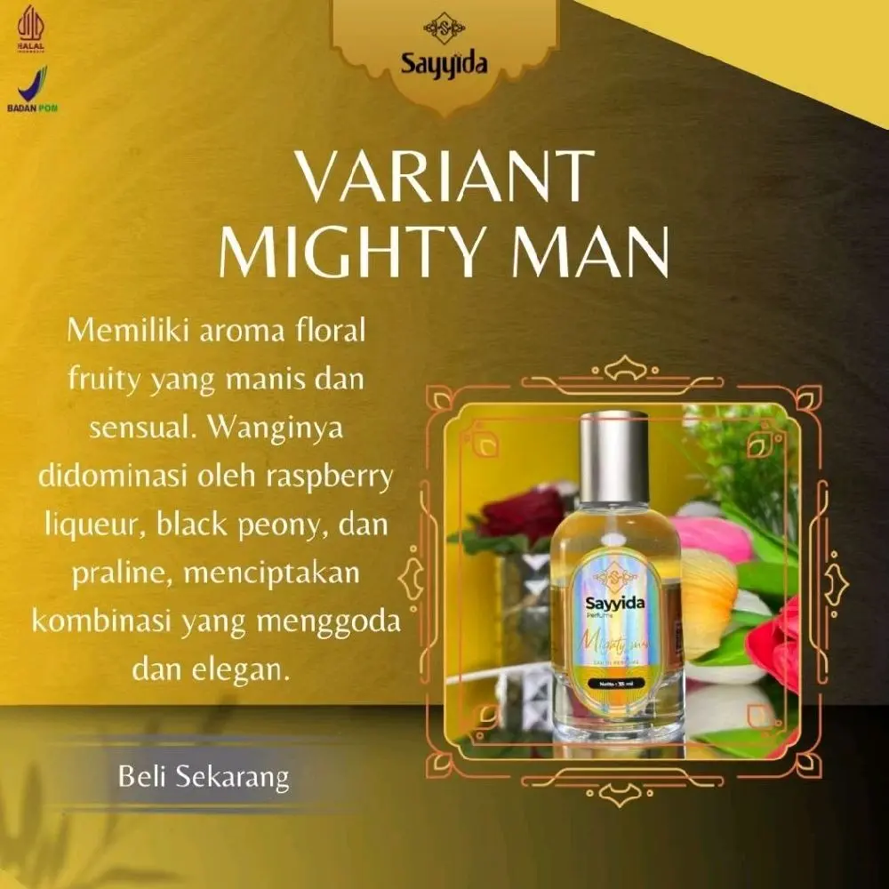 Parfum Sayyida hadir dengan wangi bunga dan buah yang mantap. Wanginya lembut,