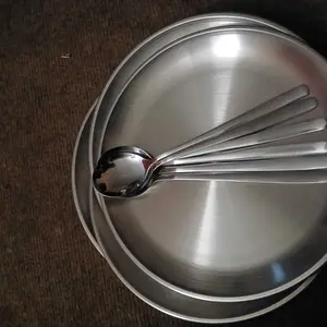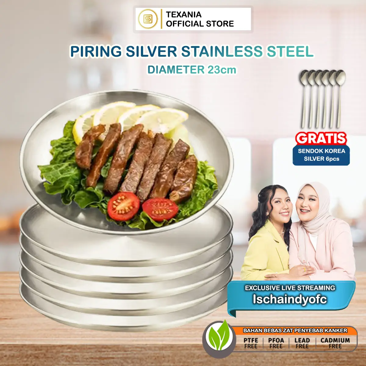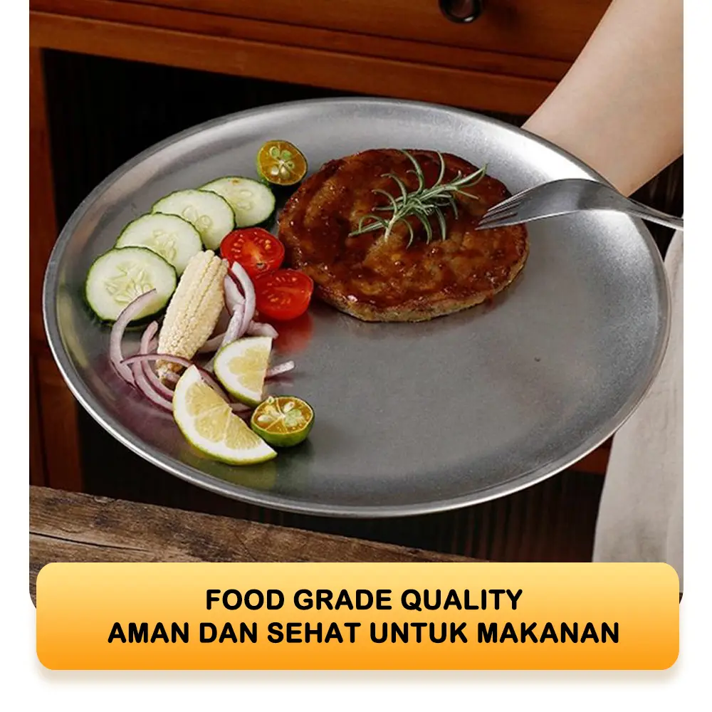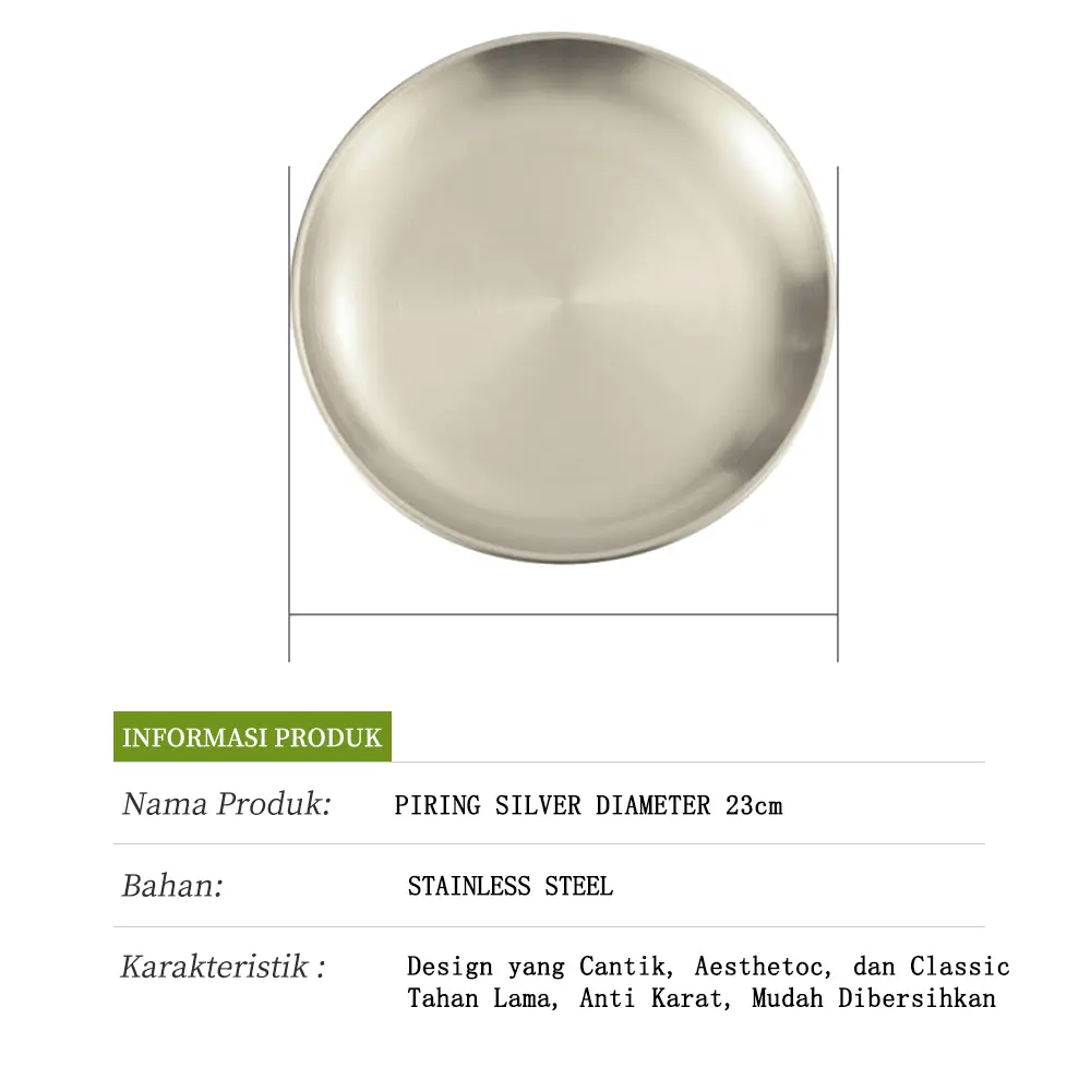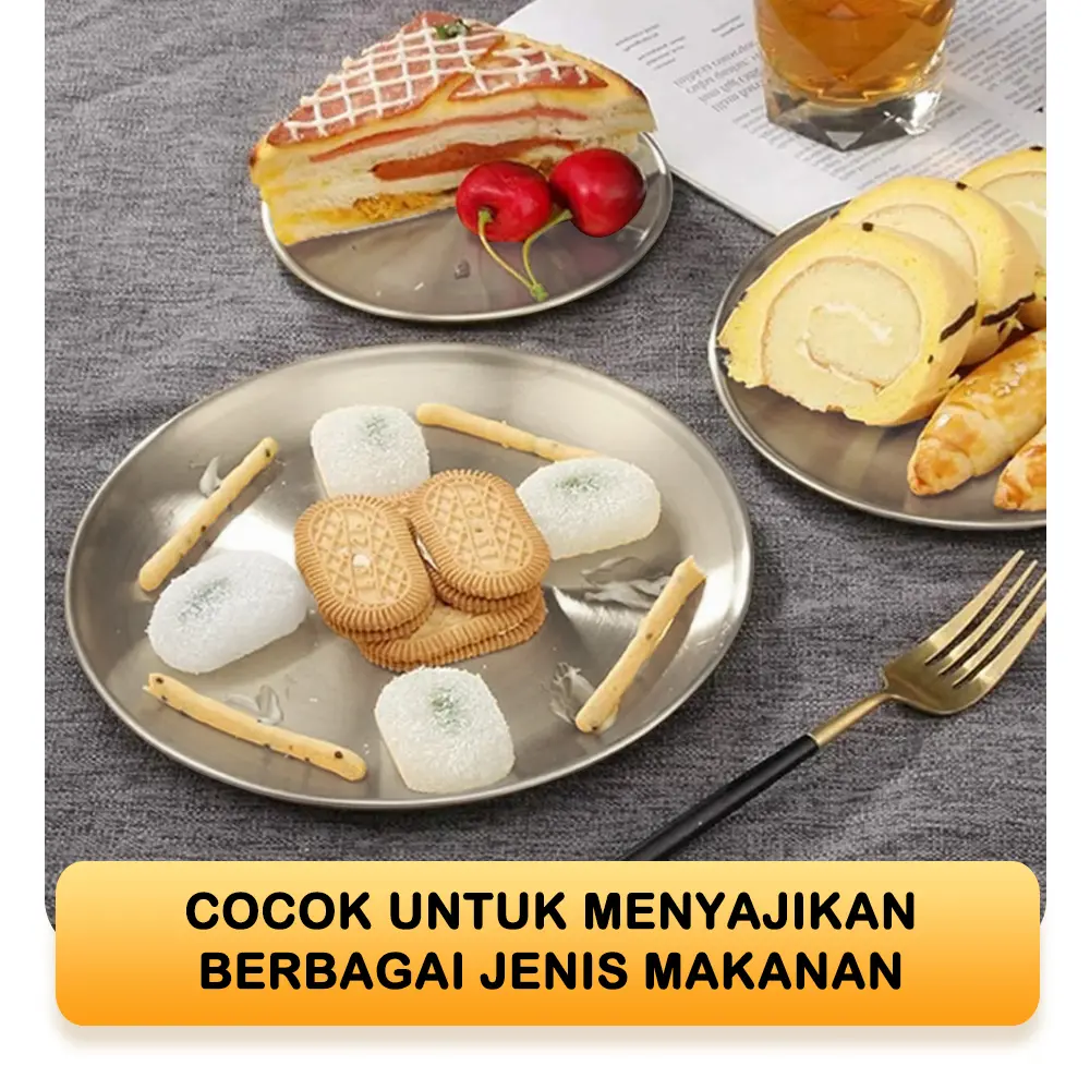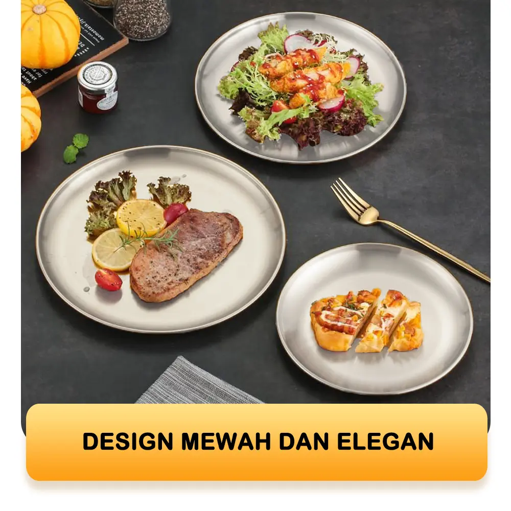 [EXCLUSIVE ISCHAINDYOFC] TEXANIA Set Piring Korea SILVER Stainless Steel Design Mewah isi 6pcs Diameter 23cm Free Sendok Korea Silver 6pcs