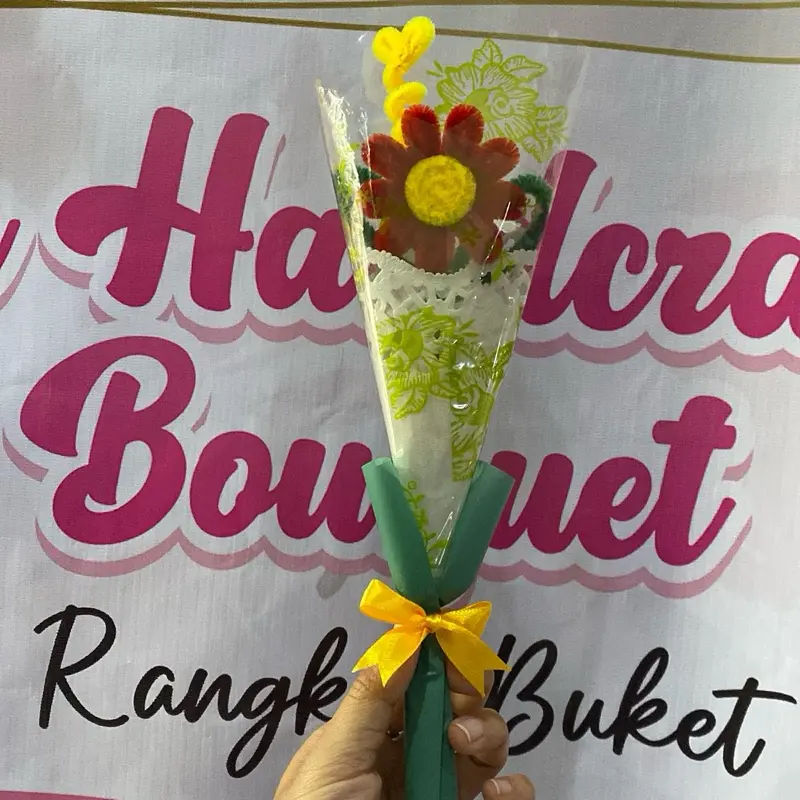 * Buket bunga single dari kawat bulu: Buket ini terbuat dari kawat bulu, memberikan tampilan yang unik dan menarik.