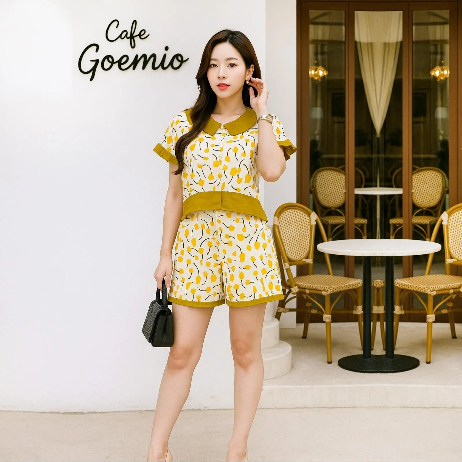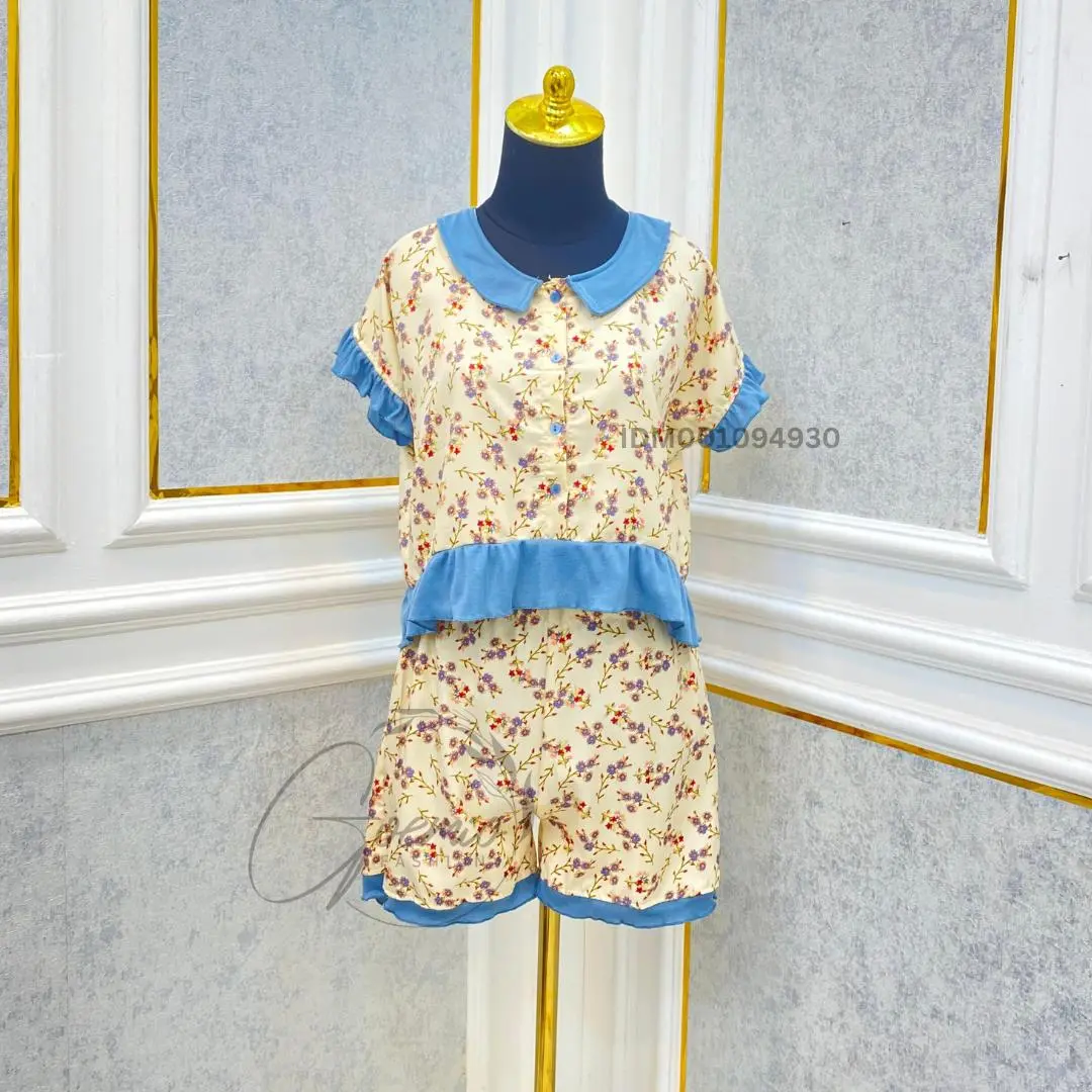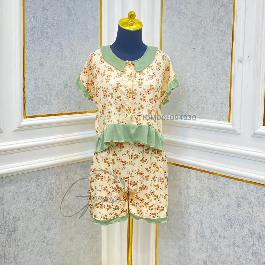 AF| Set Hayfa Setelan Lengan Pendak Bahan Matsilk Combi Rajut Knit Motif Floral Celana Pendek Wanita Casual Santai