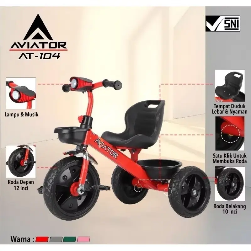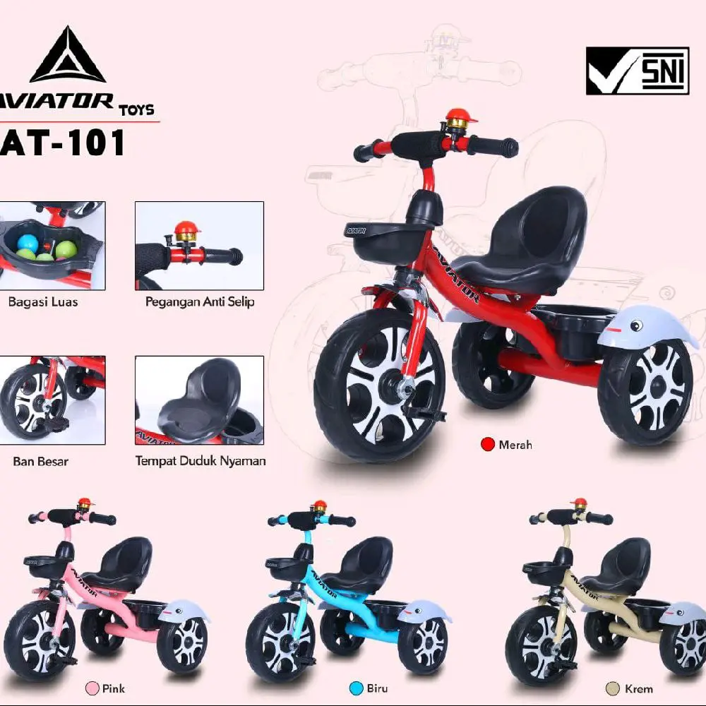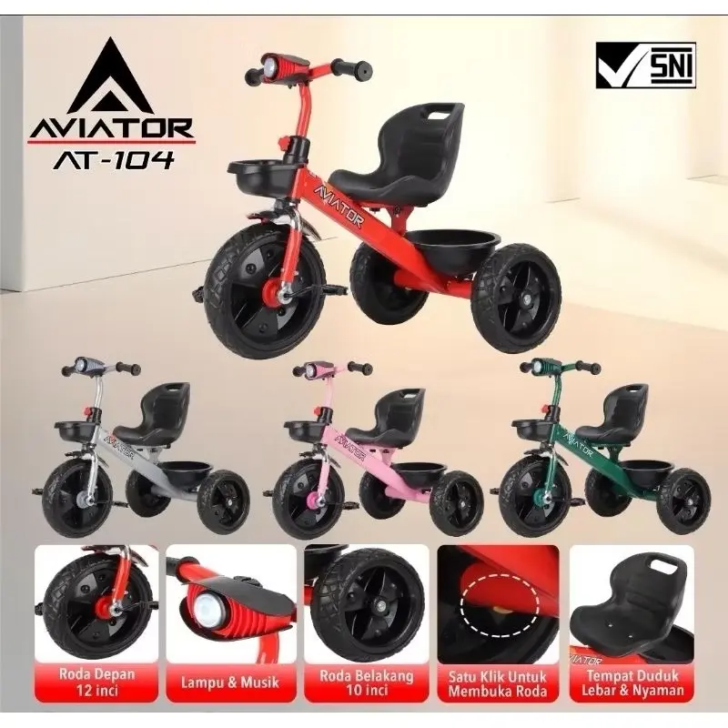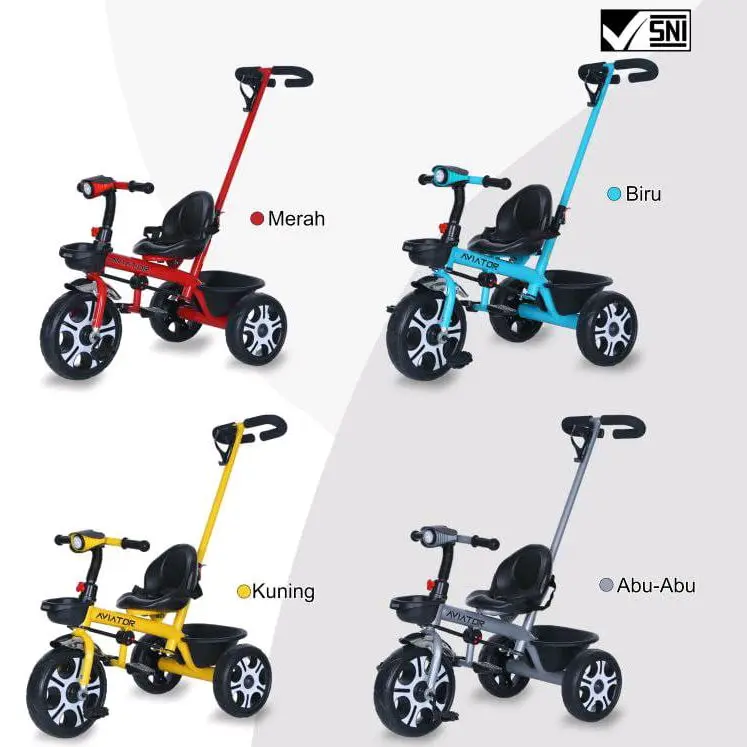 Sepeda anak roda tiga Aviator cocok untuk anak usia 1-3 tahun. Rangka besi
