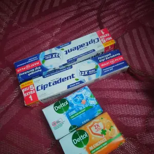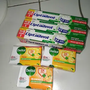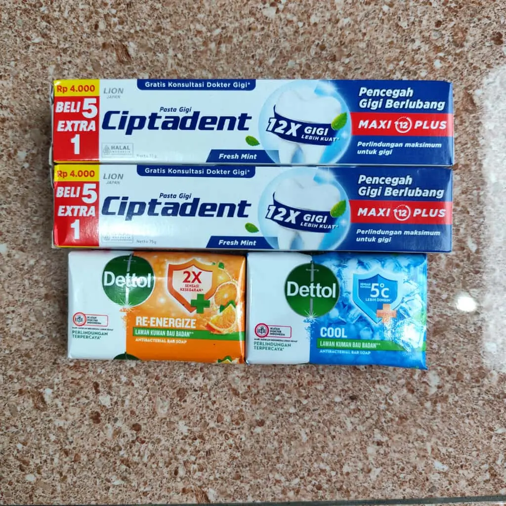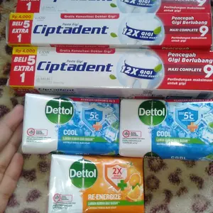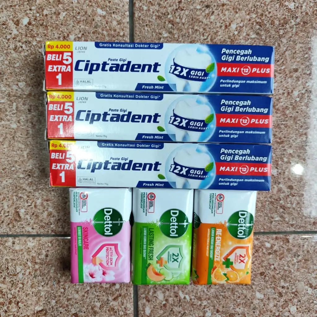Paket udh sampai bener ada 3 ciptadent 3 sabun detol, penjualnya amanah, pengiriman cepat pengemasan rapih dan tebal pke dus, kurir ramah.