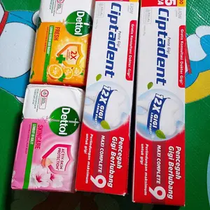 Manfaat produk: Pasta gigi:untuk bersihin gigi buang bau tdk enk di mulut dan sabun:untuk wangi badan segar