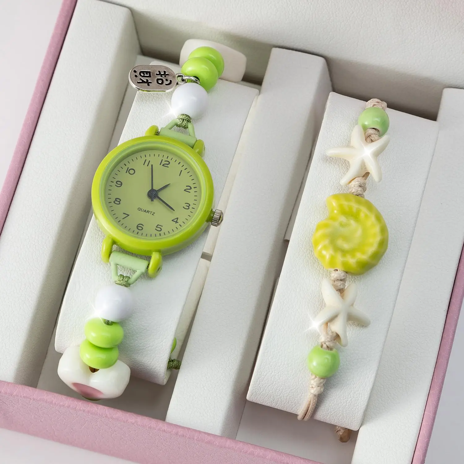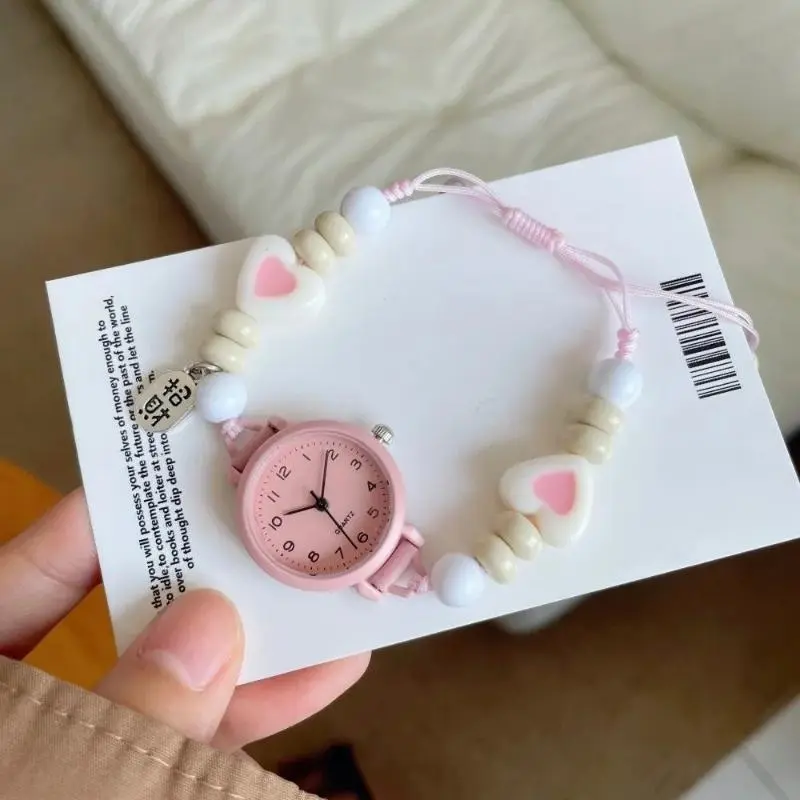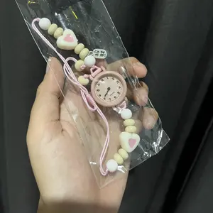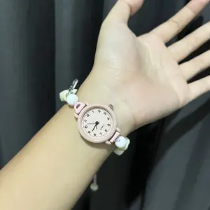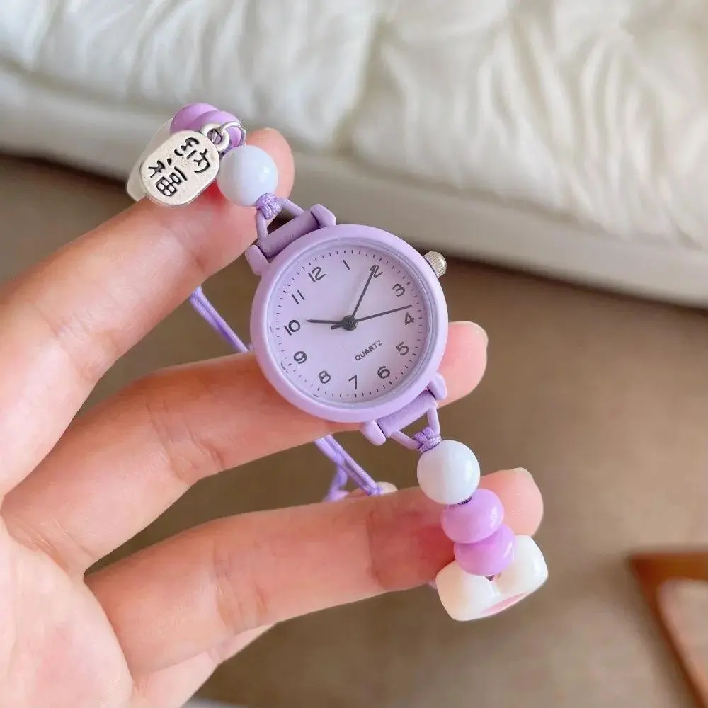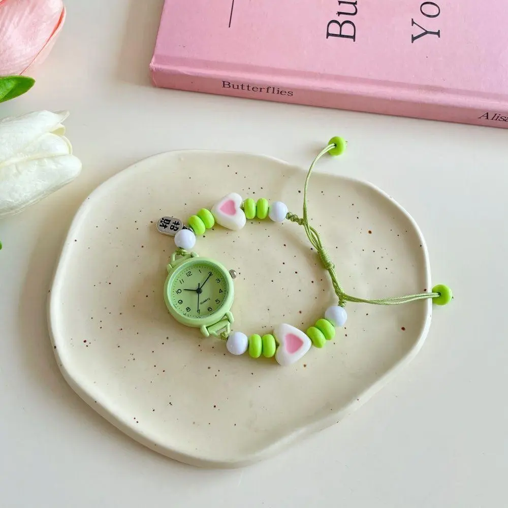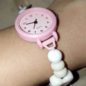 【Produk Baru Yang Trendi】Jam Tangan Quartz Wanita Dengan Kaca Dial Bulat Dan Tali Manik Skema Warna Dopamin Muda Dan Berenergi Dipasangkan Dengan Watches Aksesoris Lucu Arloji (kotak Tidak Termasuk)