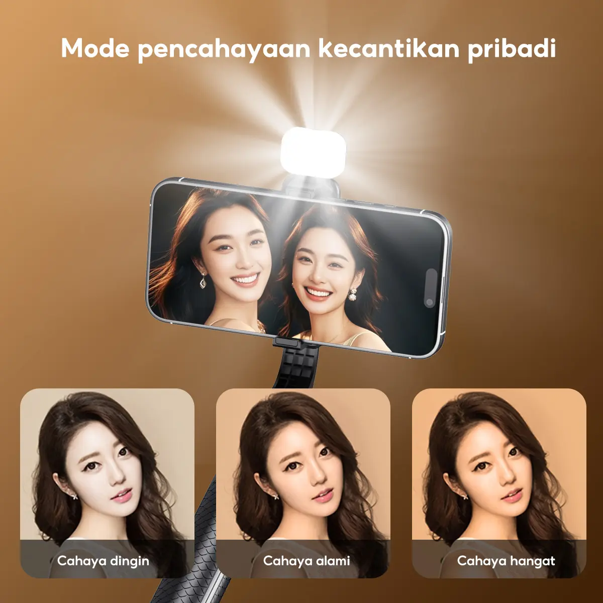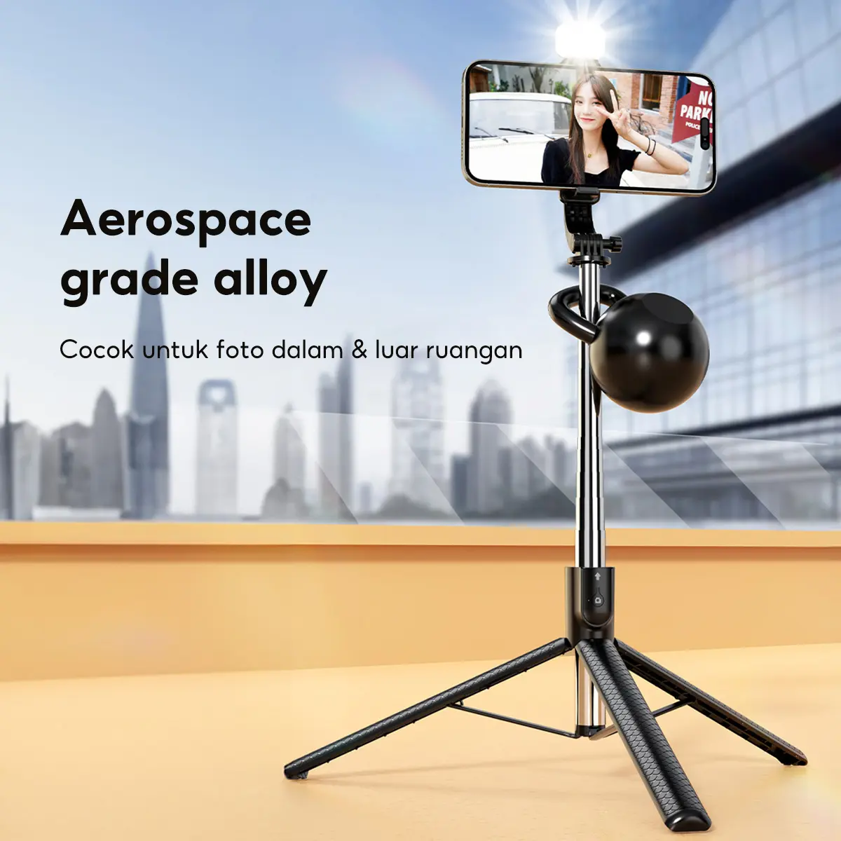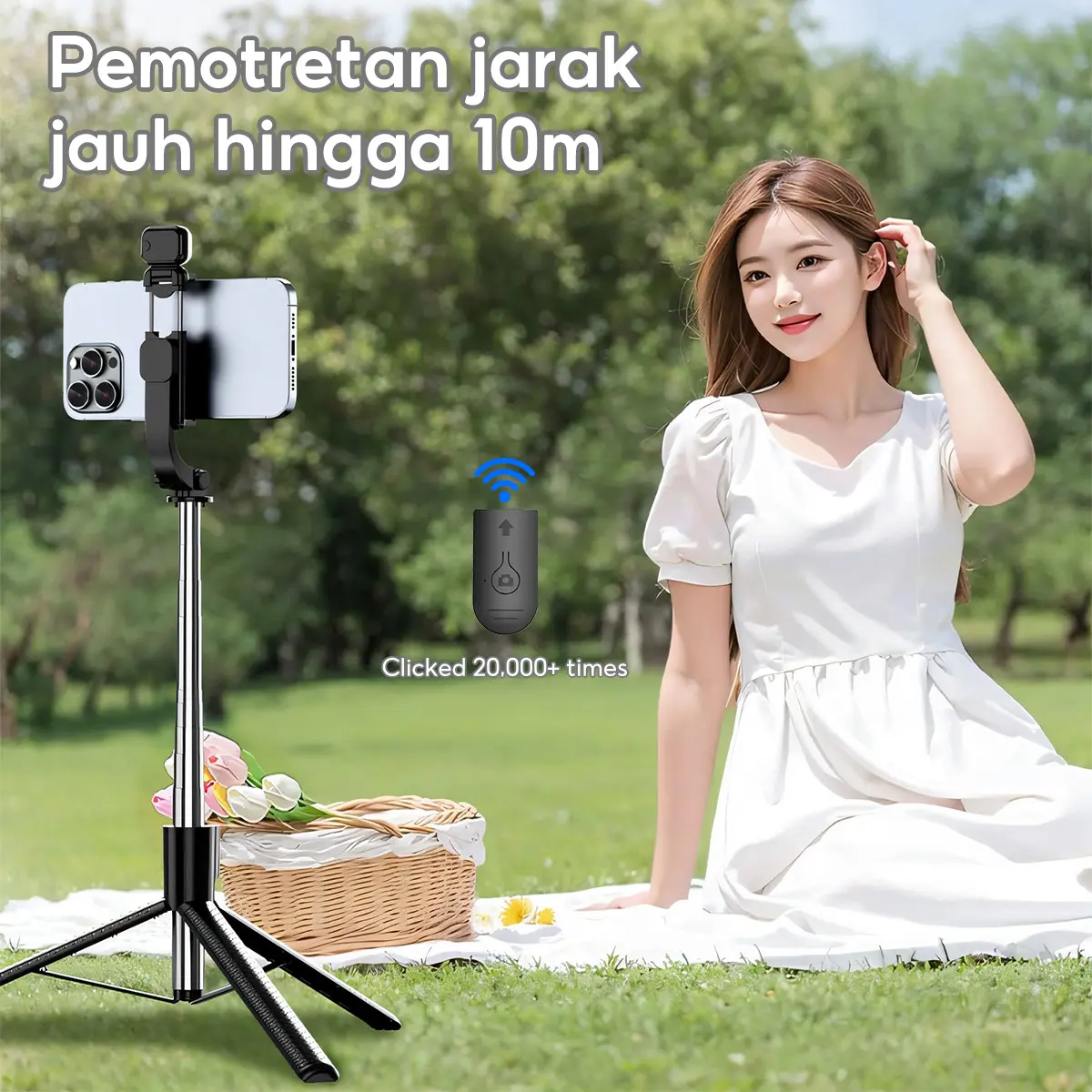 ·Remote Bluetooth Nirkabel: Kontrol jarak jauh hingga 10 meter dengan 1 tombol praktis untuk kemudahan shutter.