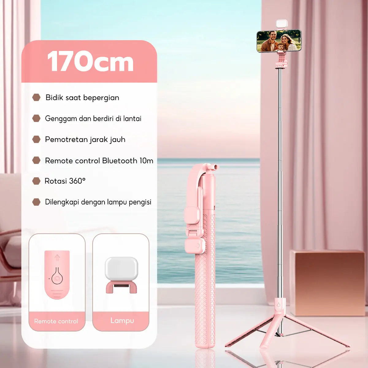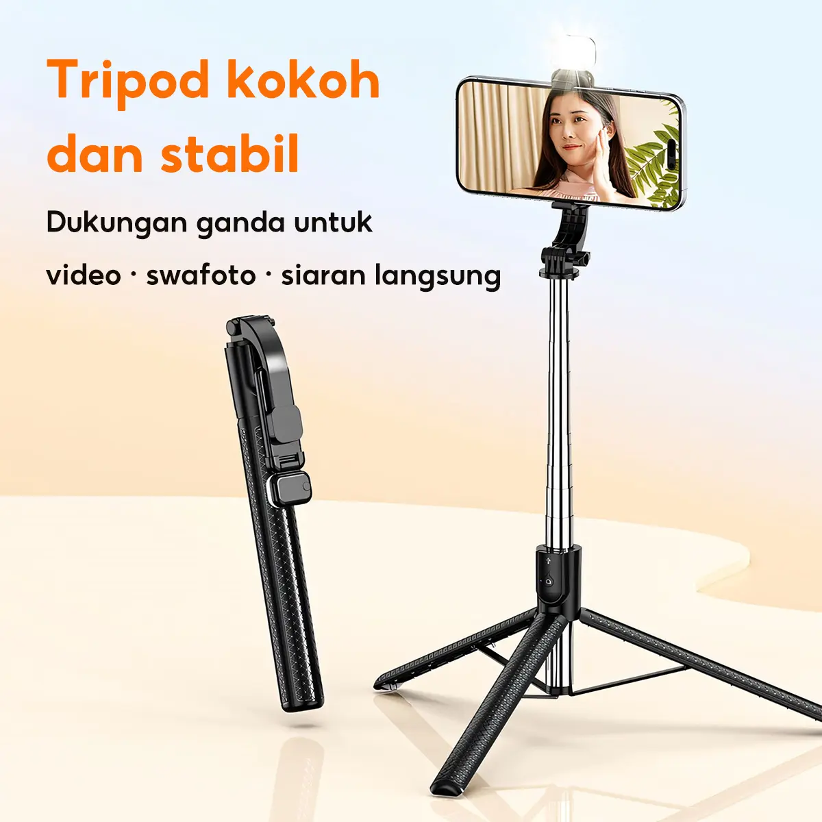 Zivoka ZT01 Tripod Selfie Stick 1.7M: Rekam Stabil, Cahaya Sempurna, Garansi Resmi!