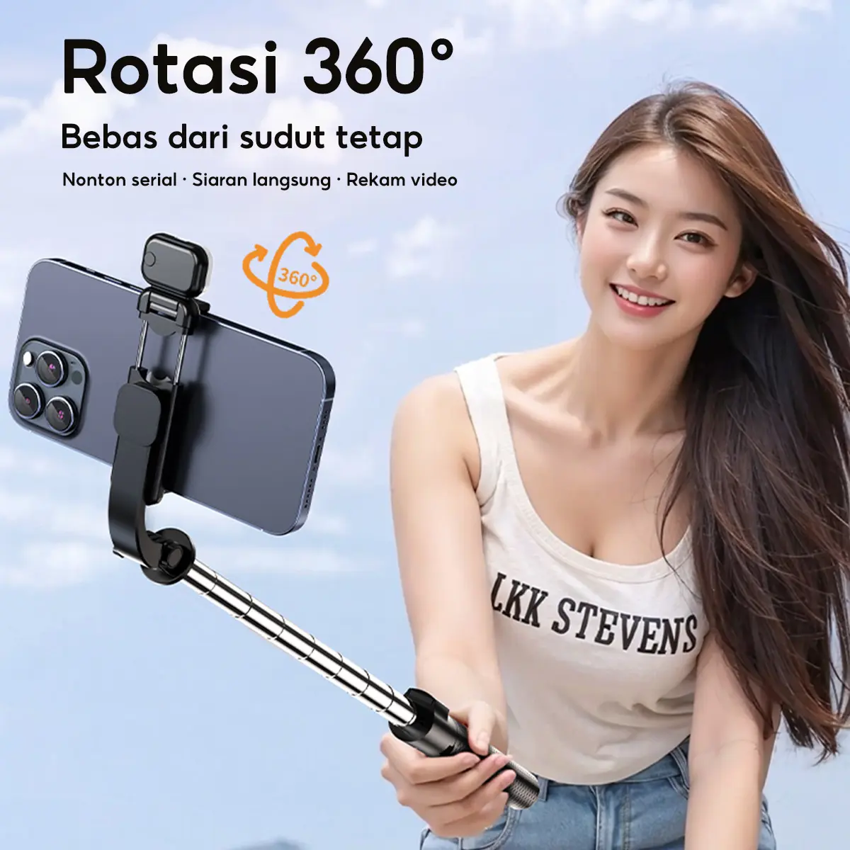 ·Rotasi 360 Derajat: Pemegang HP dapat diatur bebas untuk mendapatkan sudut sempurna, baik portrait maupun landscape.