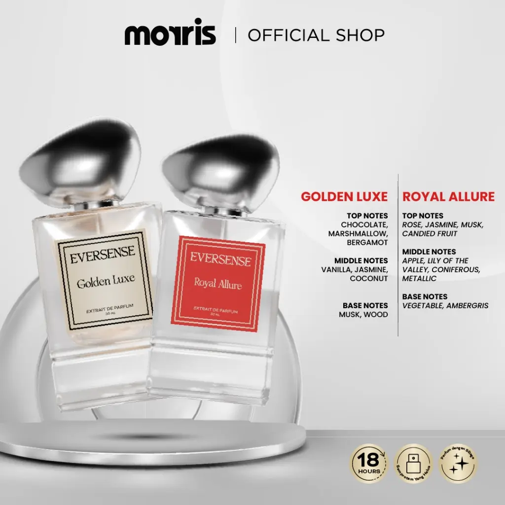 ✨ Eversense Extrait de Parfum adalah koleksi parfum premium yang dirancang untuk mengubah momen singkat menjadi kenangan abadi. Parfum ini memiliki konsentrasi tinggi, memberikan ketahanan aroma lebih lama. Formula ini memastikan setiap semprotan menghadirkan intensitas dan kedalaman parfum yang khas.