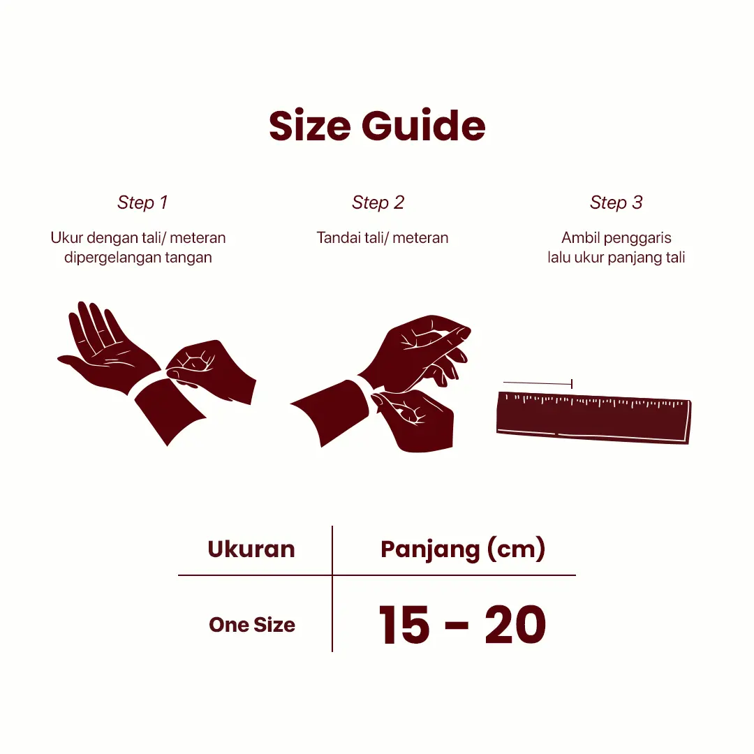 • ONE SIZE, Dapat dipakai untuk ukuran pergelangan tangan : ± 15-20 cm