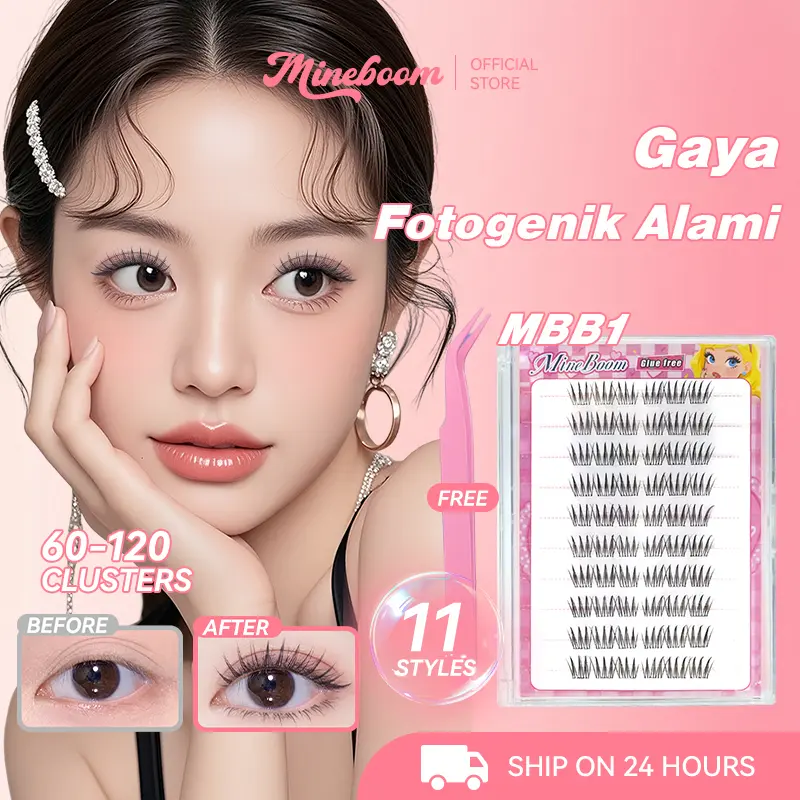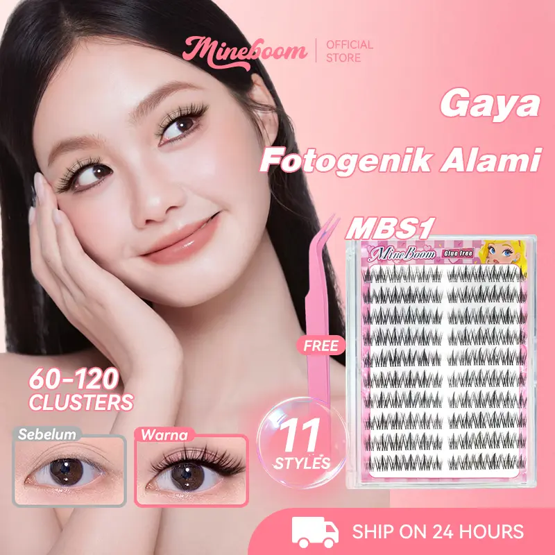 MINEBOOM Ekstensi Bulu Mata Cluster 60-120 Tanpa Lem