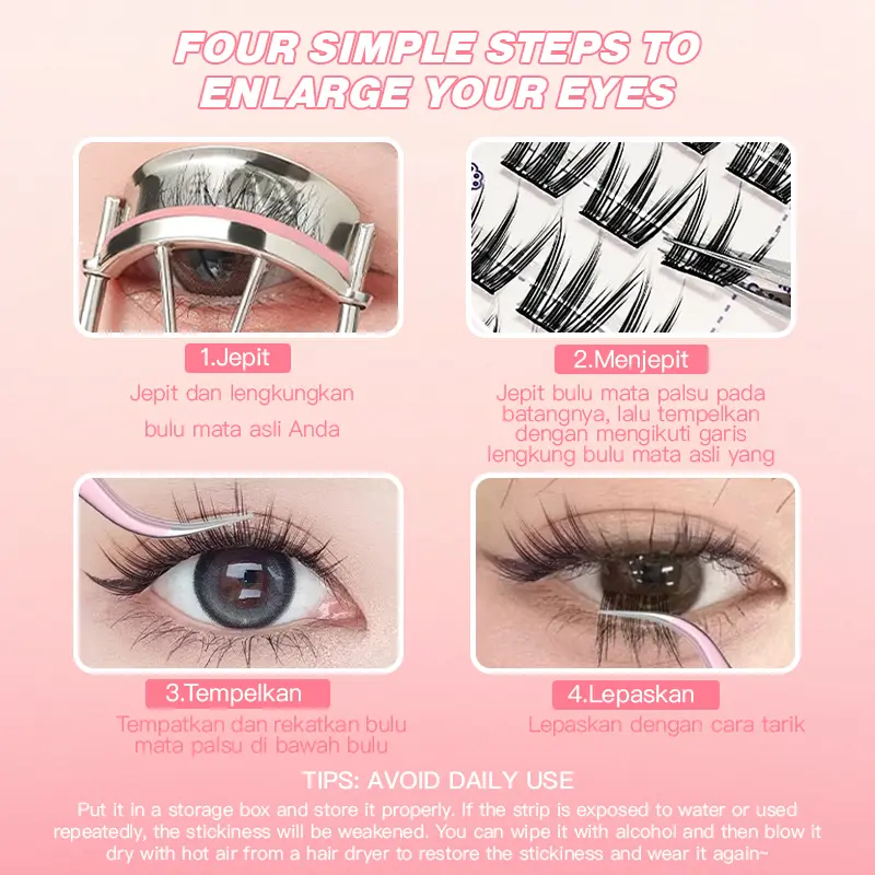 ◆Bulu Mata Cluster 100-120: Ekstensi bulu mata dengan ukuran 100-120, memberikan tampilan alami dan menarik.