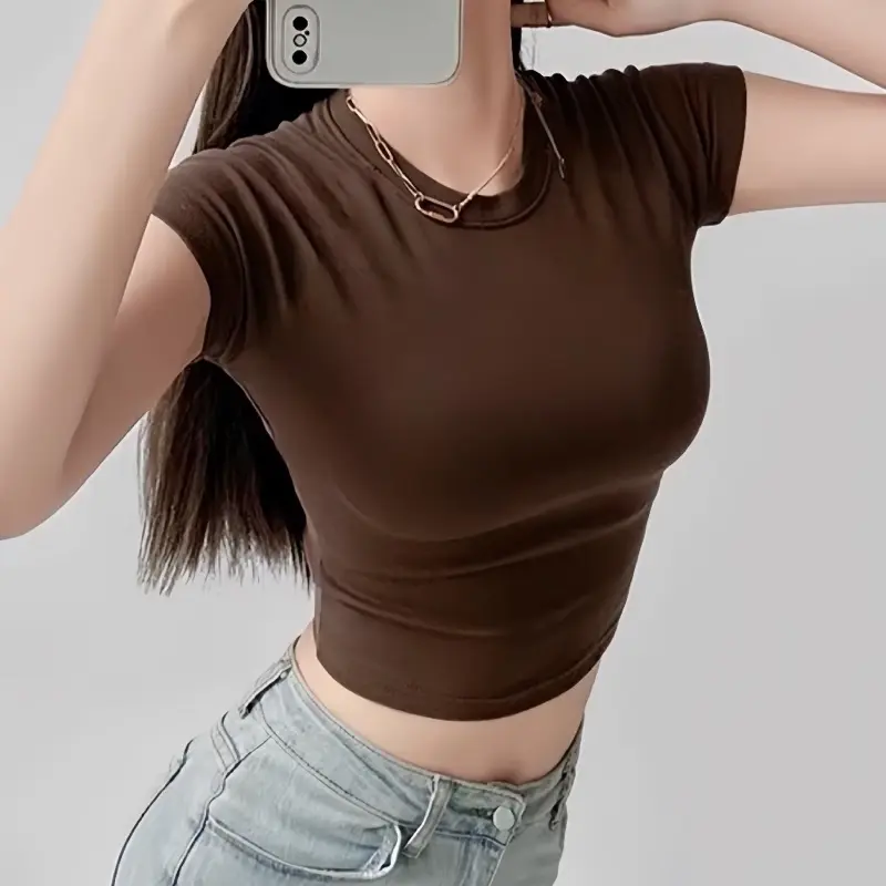 Kaos wanita Crop Top Korea Cotton strech Croptop Korean Style Atasan Wanita Croptop Bahan Jersey Lembut Nyaman