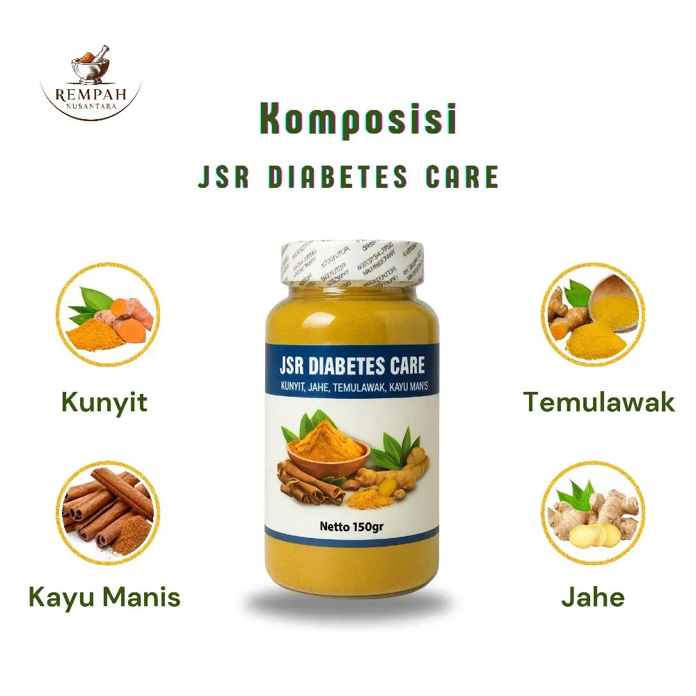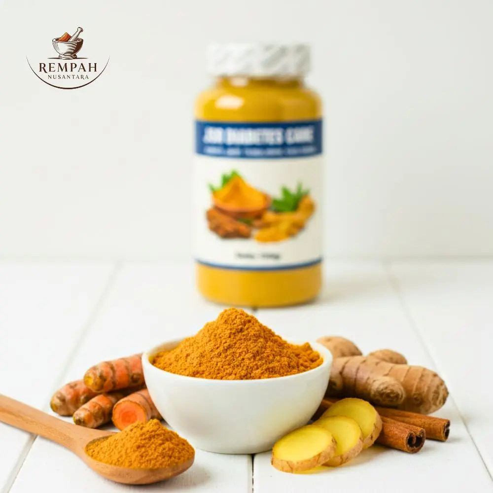 Obat Herbal Diabetes ini diformulasikan dari rempah pilihan seperti kunyit, jahe, temulawak, dan kayu manis.