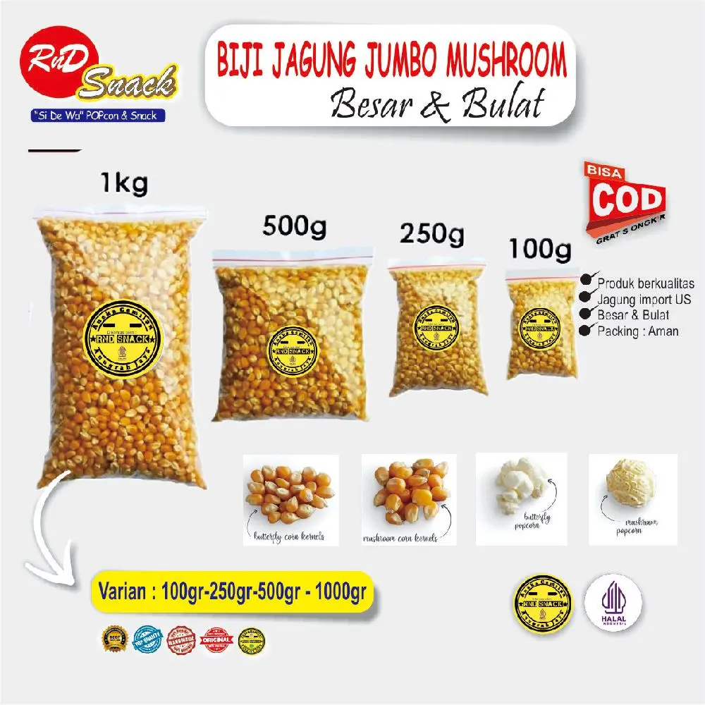 langsung dengan bahan biji jagung mushroom import US. Berkualitas, dipadukan