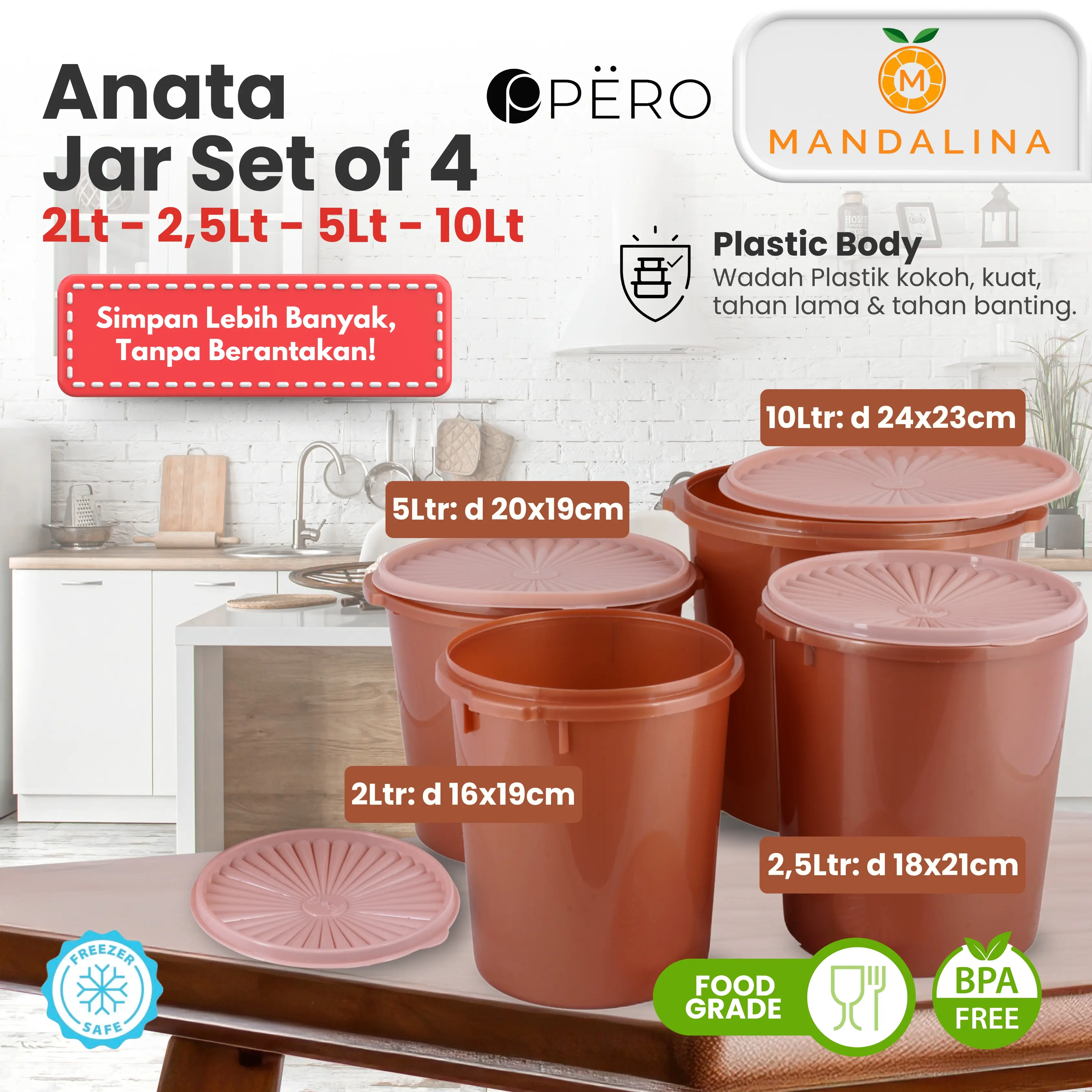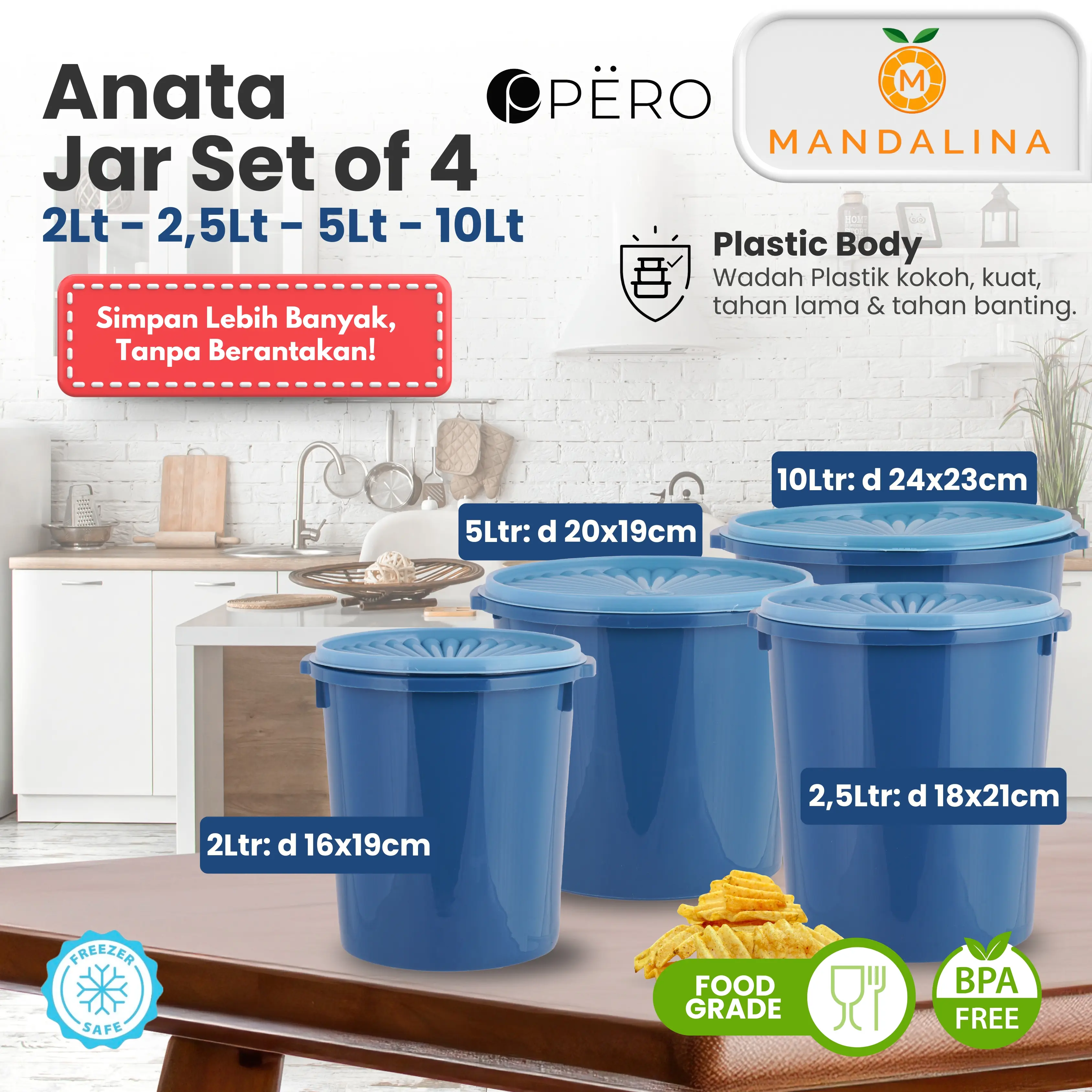 Food Grade & BPA Free: Aman untuk menyimpan makanan karena food grade dan bebas BPA.
