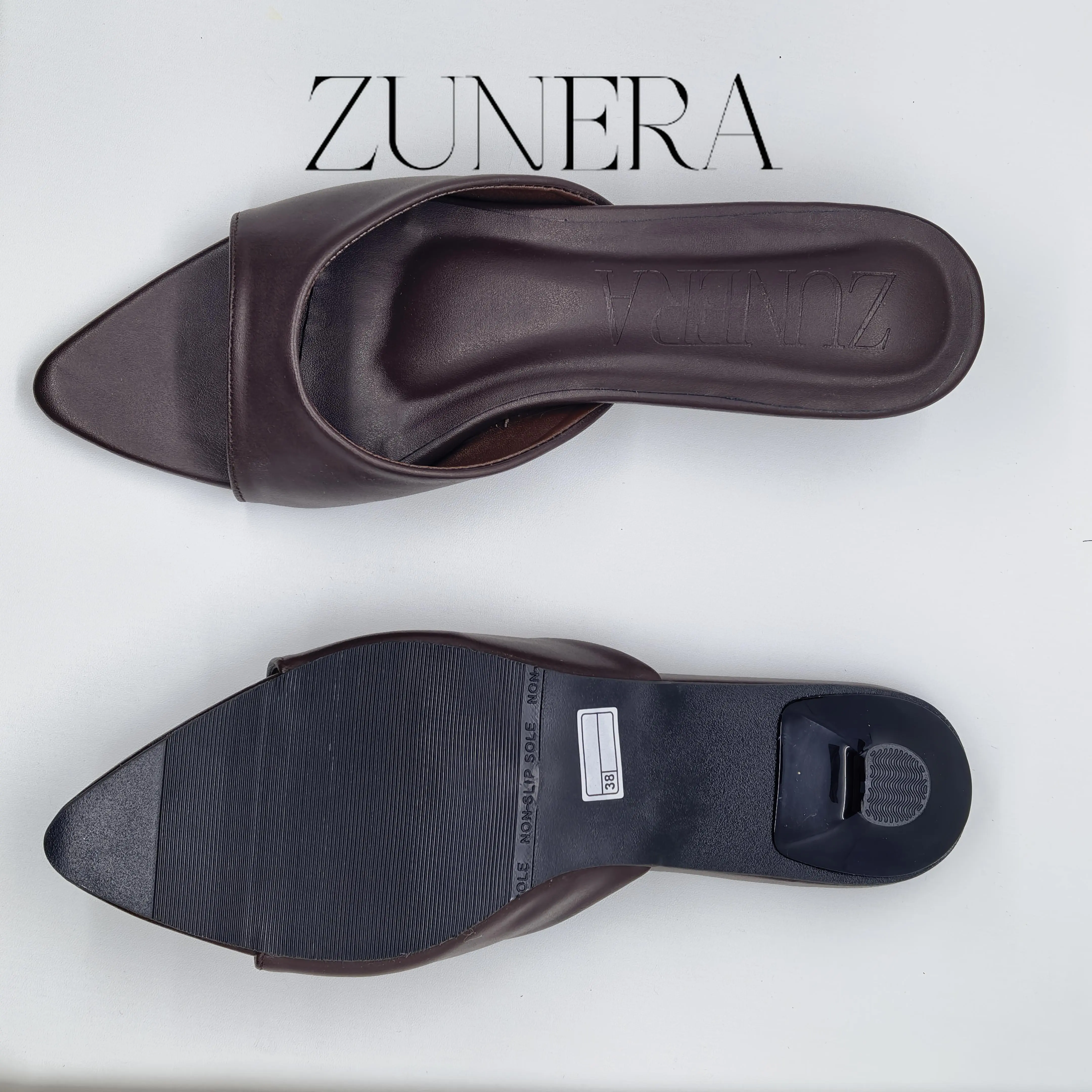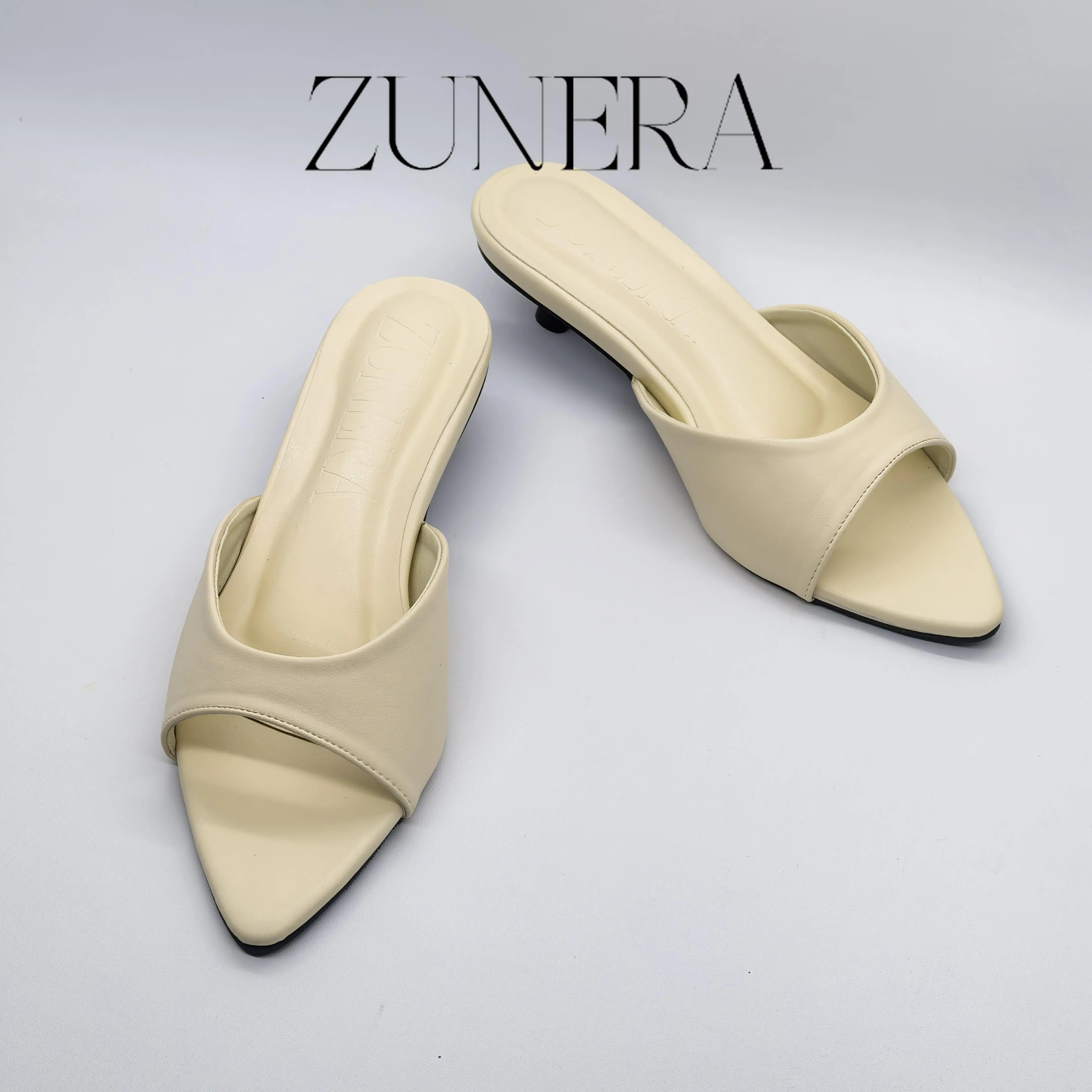 ✨ ZUNERA NERA heels wanita model terbaru dari ZUNERA dengan look elegan dan minimalis. Tinggi hak 3cm, material sintetis, dan sole non-slip. Pijakan busa. Tersedia ukuran 36-40. Size guide: NO PANJANG KAKI. Size normal untuk kaki ramping. Kaki lebar atau berisi wajib upsize.