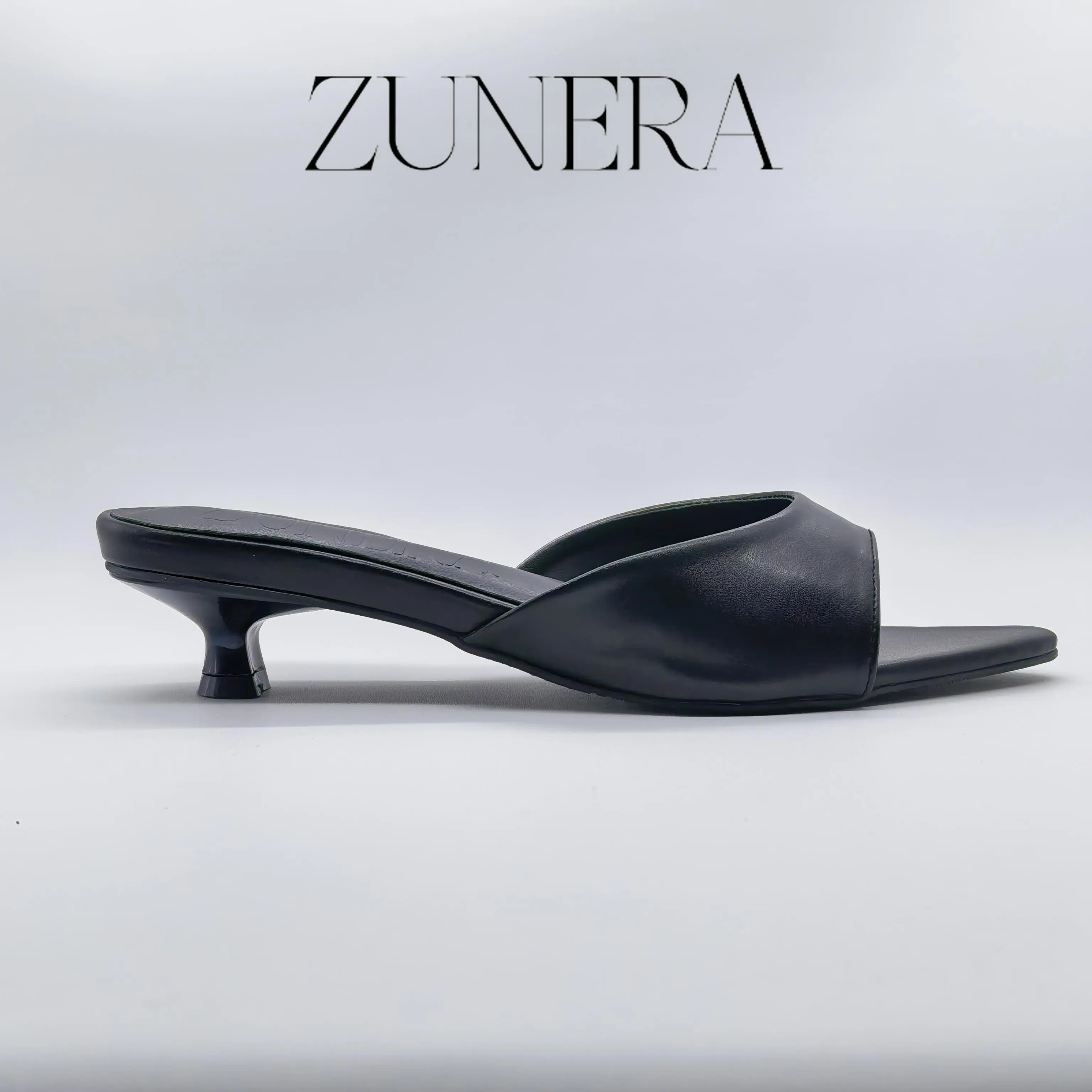ZUNERA NERA Heels Wanita Tinggi 3cm Mule Sandals Slip-on Open-toe Elegan & Minimalis Material Sintetis Sol Non-slip Ukuran 36-40 Model Terbaru