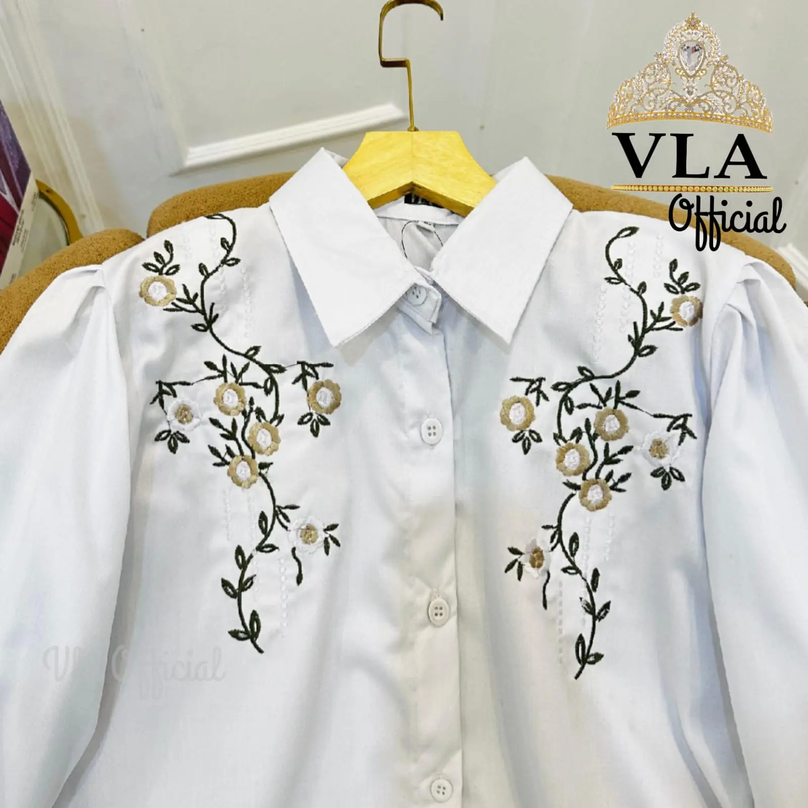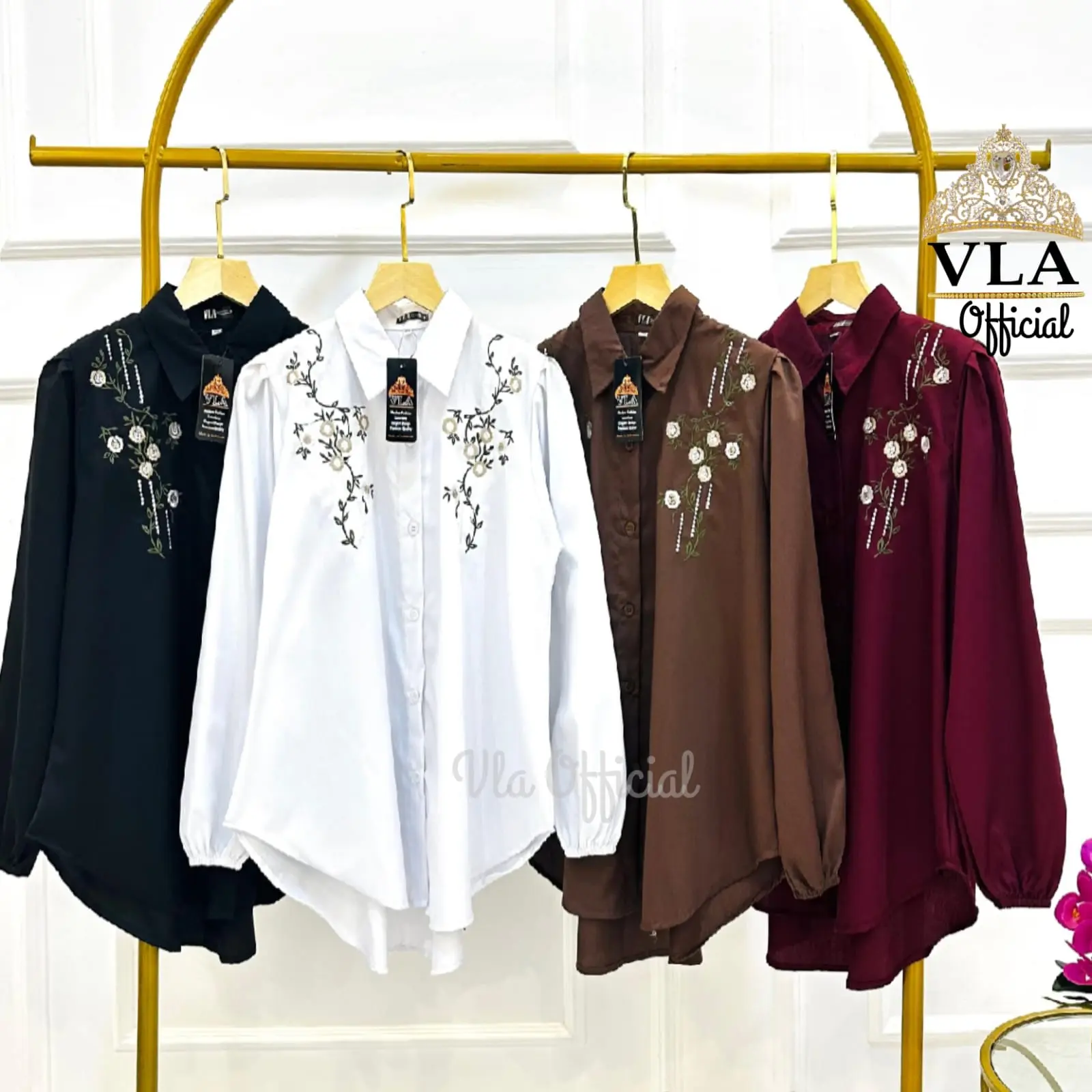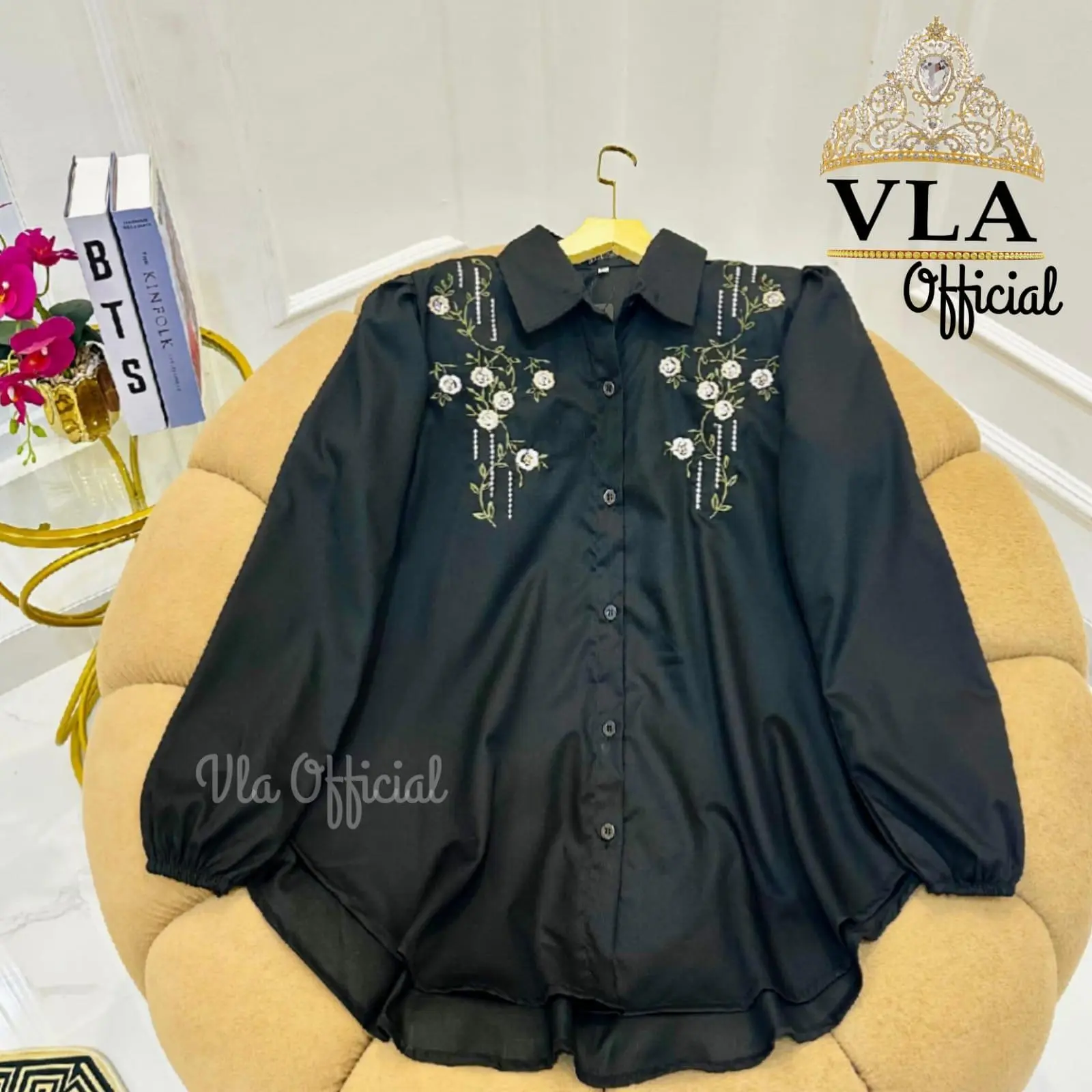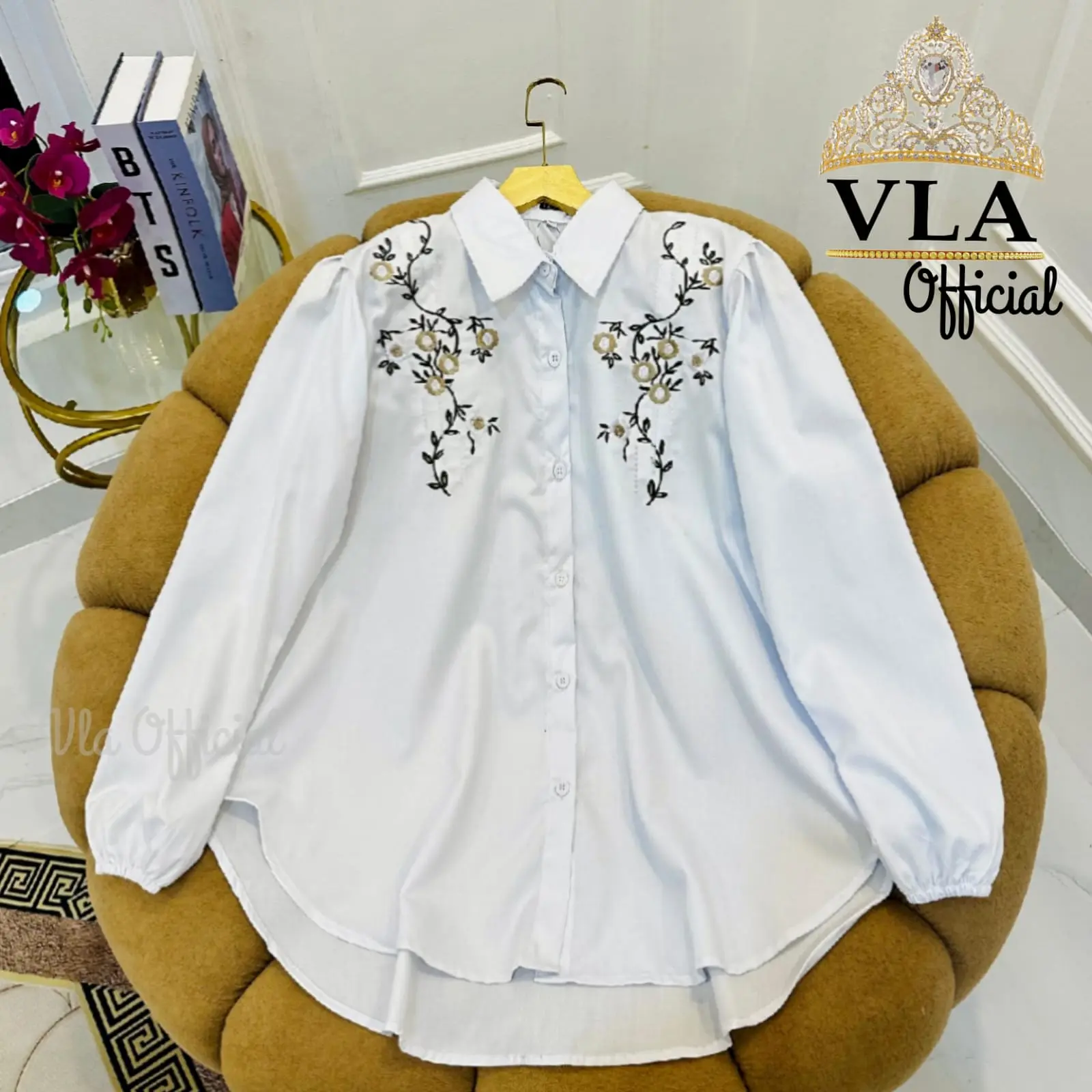 VLA - KENITA BORDIR Tunik Kemeja Wanita Bahan Katun Kekinian Jumbo LD 110 120 130 140 Bordir Elegan Terbaru Viral 2025 Full Kancing Tampil Ramping Trendy