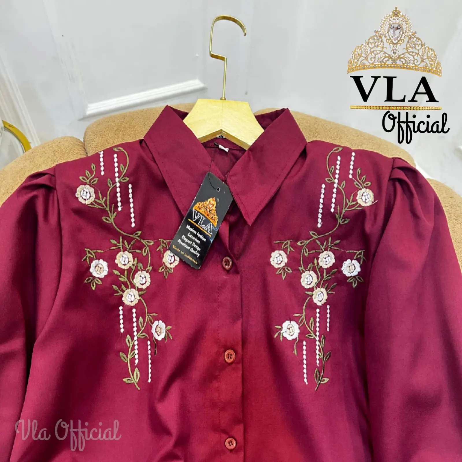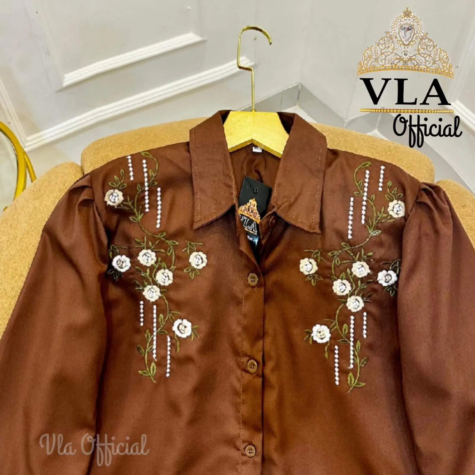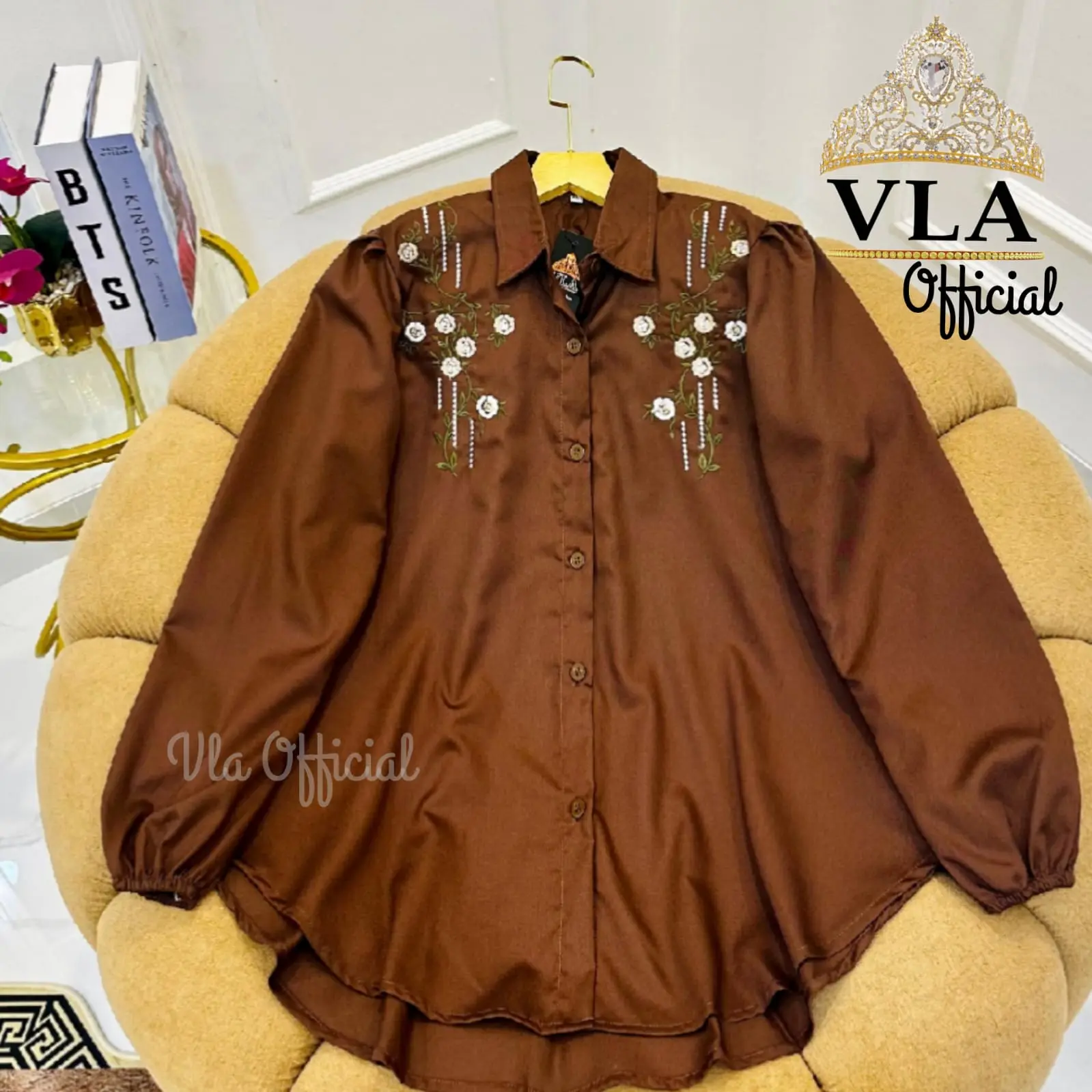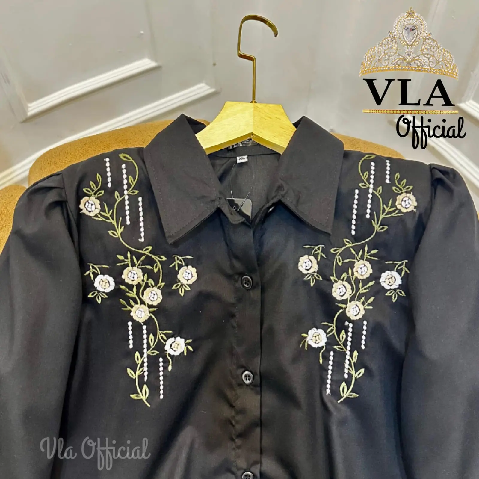 VLA - KENITA BORDIR Tunik Kemeja Wanita Bahan Katun Kekinian Jumbo LD 110 120 130 140 Bordir Elegan Terbaru Viral 2025 Full Kancing Tampil Ramping Trendy
