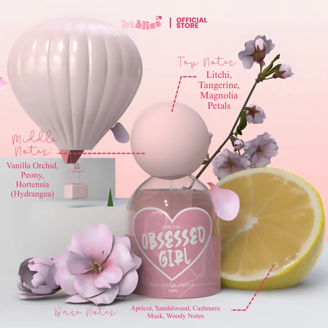 “Obsessed girl” merupakan series parfum extrait dengan ketahanan hingga 16 jam. Hadir dengan perpaduan aroma yang manis dan segar untuk menggambarkan kesan mewah dan luxury.