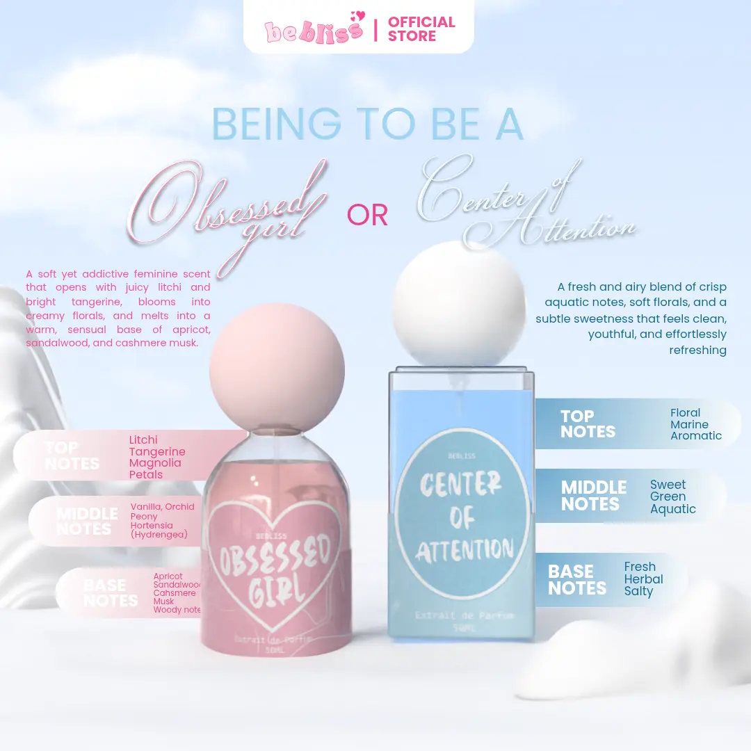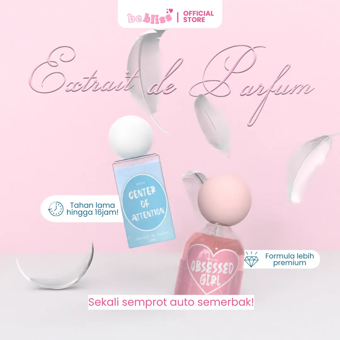 Dalam rangkaian series Extrait de Perfume setelah “Obsessed Girl”, Bebliss kembali mengeluarkan varian terbaru “Center of Attention”. Series ini menggambarkan rasa percaya diri sebagai pusat perhatian dan aroma yang menjadi obsesi bagi semua orang yang mencium wanginya.