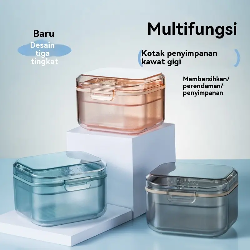 Kotak Penyimpanan Gigi 3-in-1 Multifungsi Pembersih/Perendam/Penyimpanan