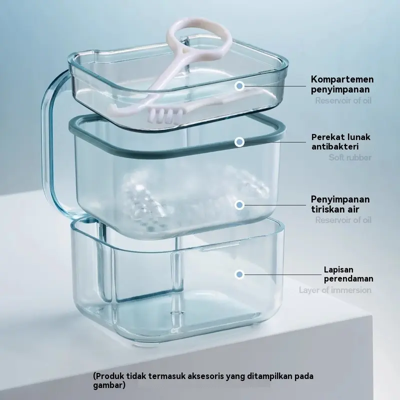 Desain 3 Lapis Multifungsi – Membersihkan, merendam, dan menyimpan sekaligus, memenuhi semua kebutuhan perawatan gigi palsu.