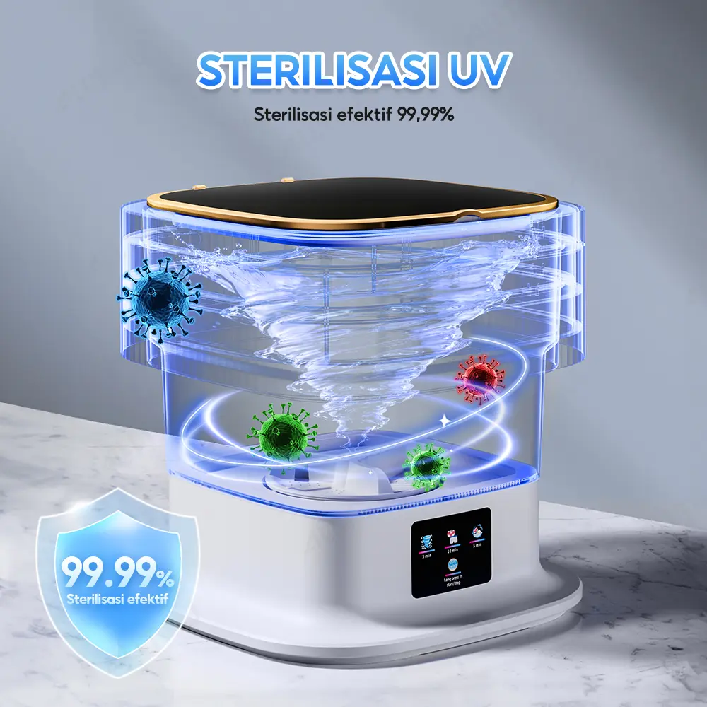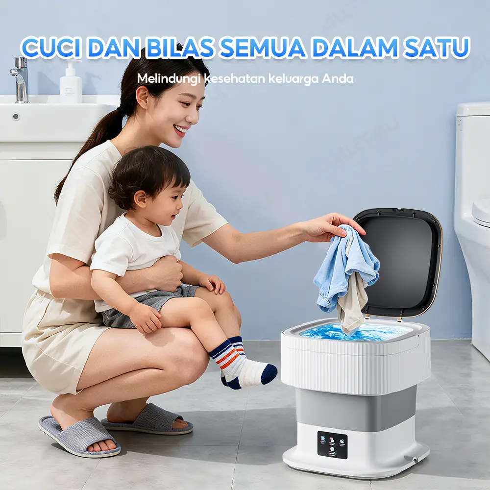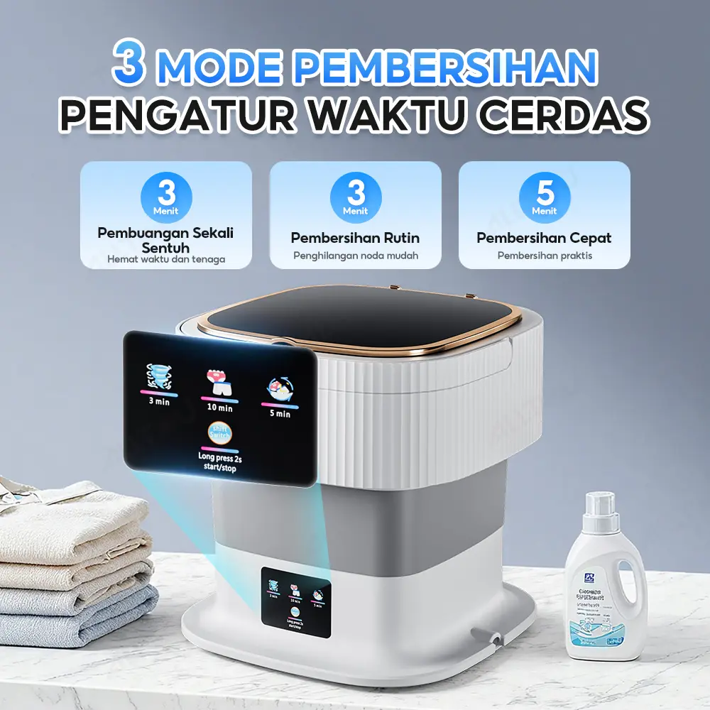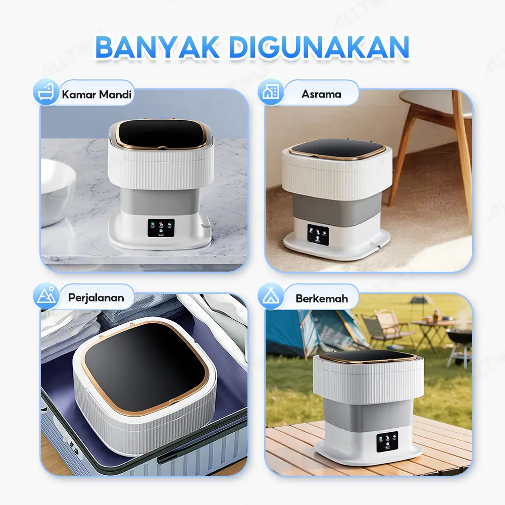 Mesin cuci ini portabel dan dapat disimpan di dalam koper, menjadikannya teman yang sempurna untuk perjalanan bisnis, liburan, berkemah, dll. Meskipun ukurannya ringkas, mesin ini berfungsi penuh dan dilengkapi pegangan yang nyaman untuk memudahkan transportasi.