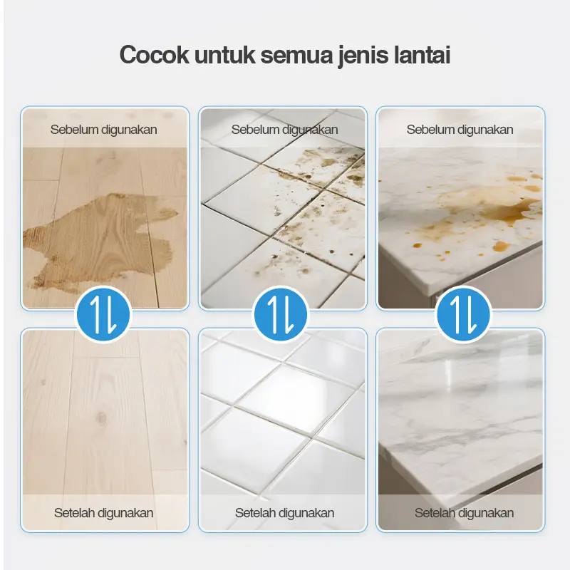 Ampuh Membersihkan: Efektif menghilangkan noda membandel dan kotoran pada semua jenis lantai, termasuk keramik, marmer, kayu, dan vinyl.