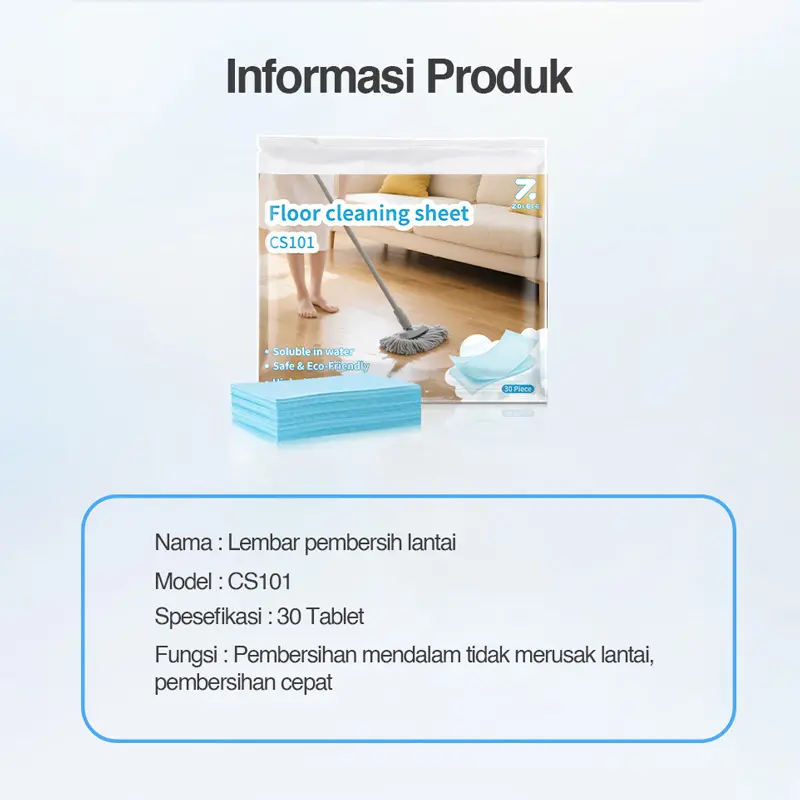 zolele CS101 Tablet Pembersih Lantai adalah solusi praktis dan efektif untuk membersihkan lantai rumah atau kantor Anda. Dengan formula khusus yang cepat larut dalam air, tablet ini mampu membersihkan berbagai jenis noda membandel, termasuk kotoran, debu, dan minyak, sekaligus memberikan wangi segar yang tahan lama.