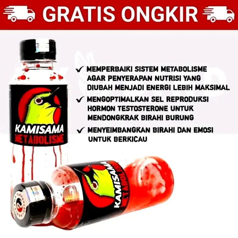 Merupakan hasil dari penelitian Kamisama Lab Yogyakarta yang fokus pada bidang Fermentasi sehingga menghasilkan produk dengan nama Kamisama Metabolisme yang berfungsi untuk memperbaiki metabolisme pada burung agar penyerapan nutrisi yang diubah menjadi energi menjadi lebih maksimal, serta diimbangi oleh kandungan Testosteron Stimulant untuk mendongkrak birahi burung agar lebih fokus untuk berkicau
