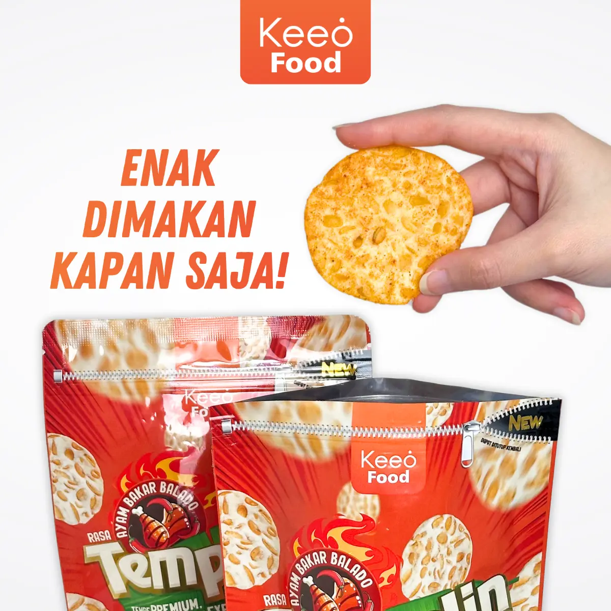 ✨ Produk Terbaru dari Keeo Food! TEMPELIN Keripik Tempe Naik Level. Rasakan sensasi ngemil yang Out of The Box! Terbuat dari Tempe Premium Kualitas Ekspor, Tempelin hadir dengan varian rasa yang bikin lidah mikir, lho kok enak? Siap-siap jatuh cinta sama keripik tempe yang nggak biasa!