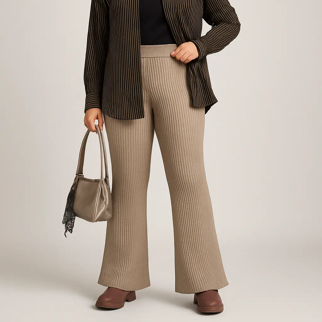 5. Celana Cutbray Wanita Knit Rajut Tebal Big Size XXL Muat BB 60-120kg Bawahan Dewasa Panjang 100cm Super Stretch Nyaman Sehari-hari Bahan Premium Halus dan Lentur