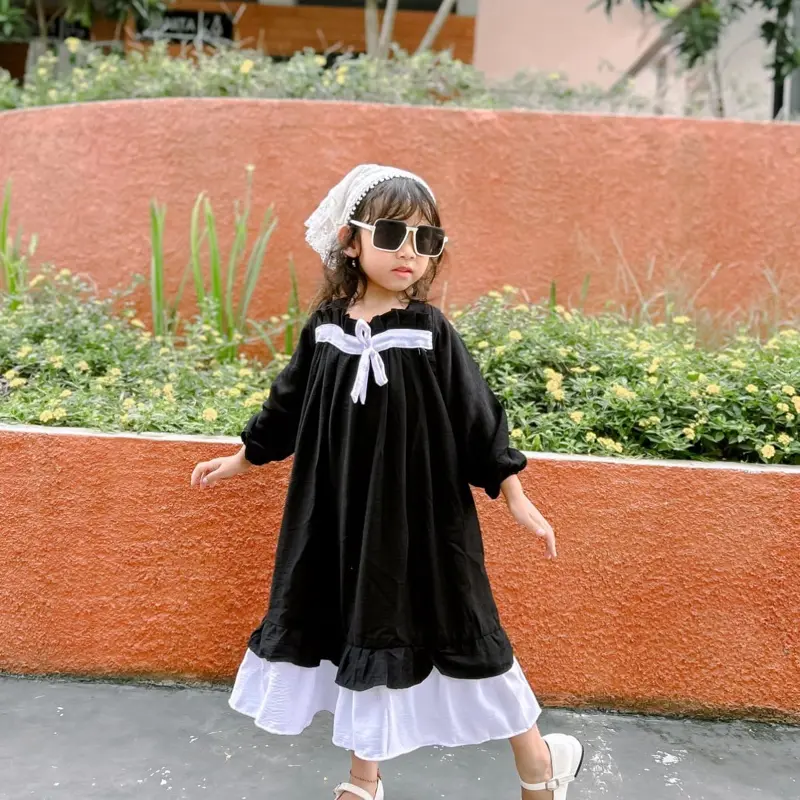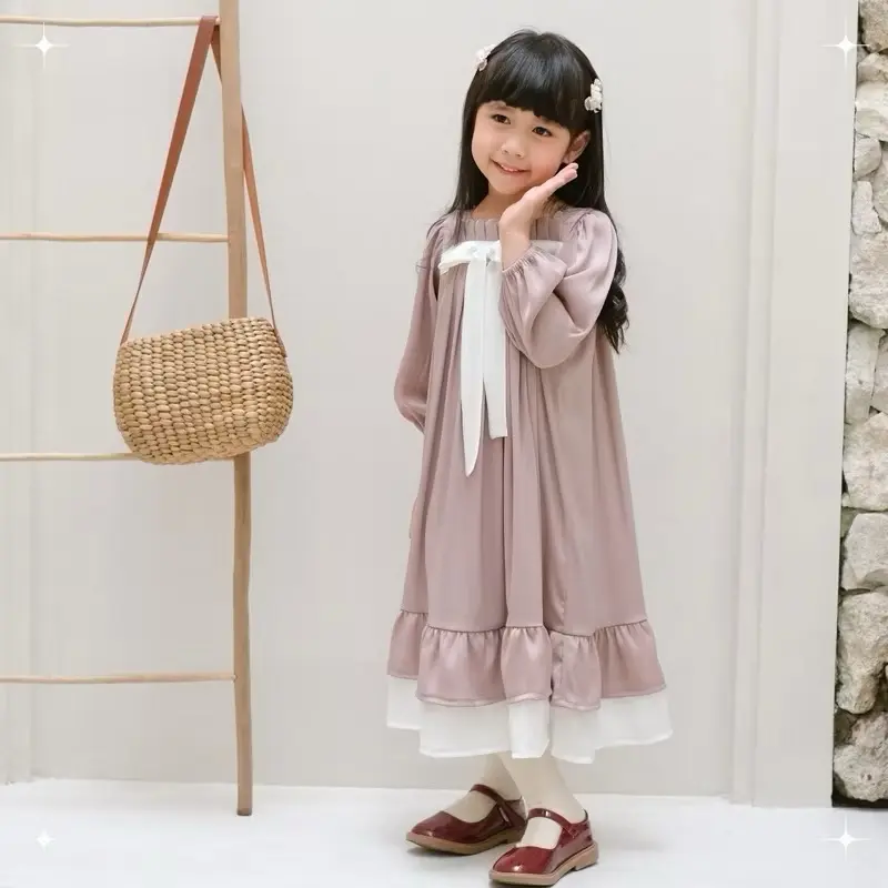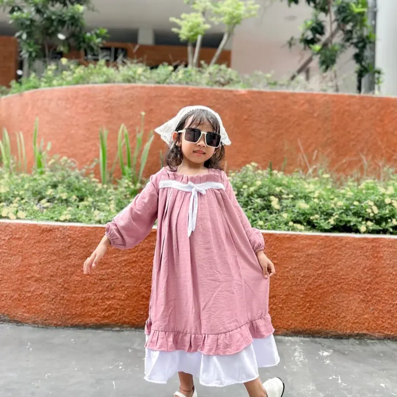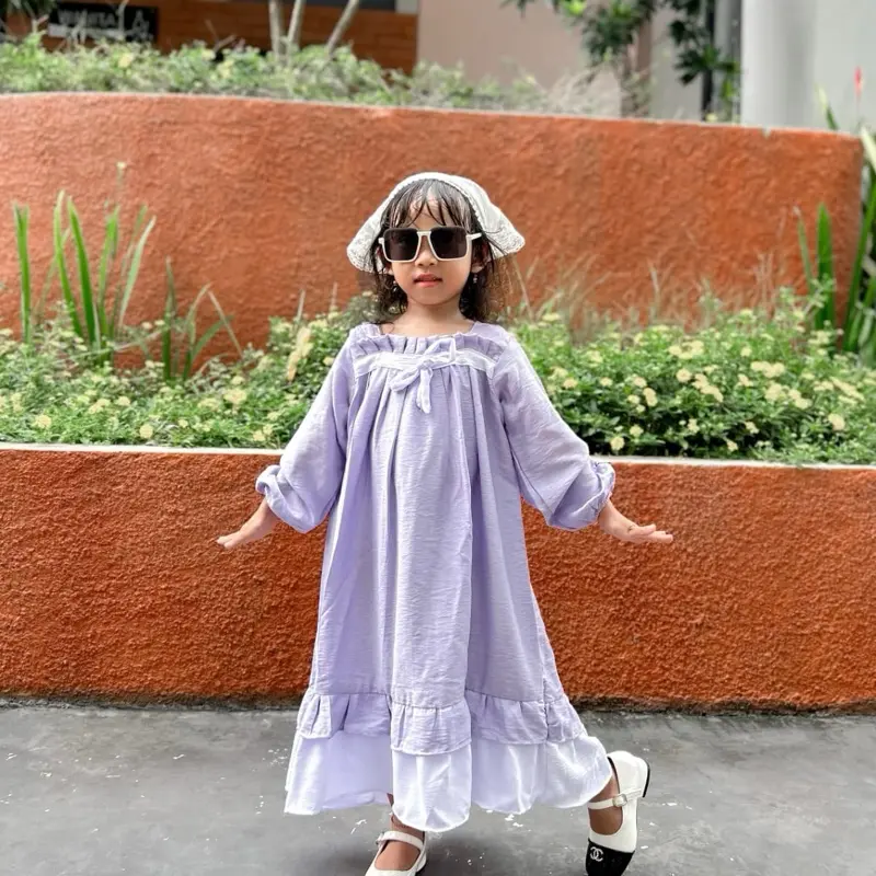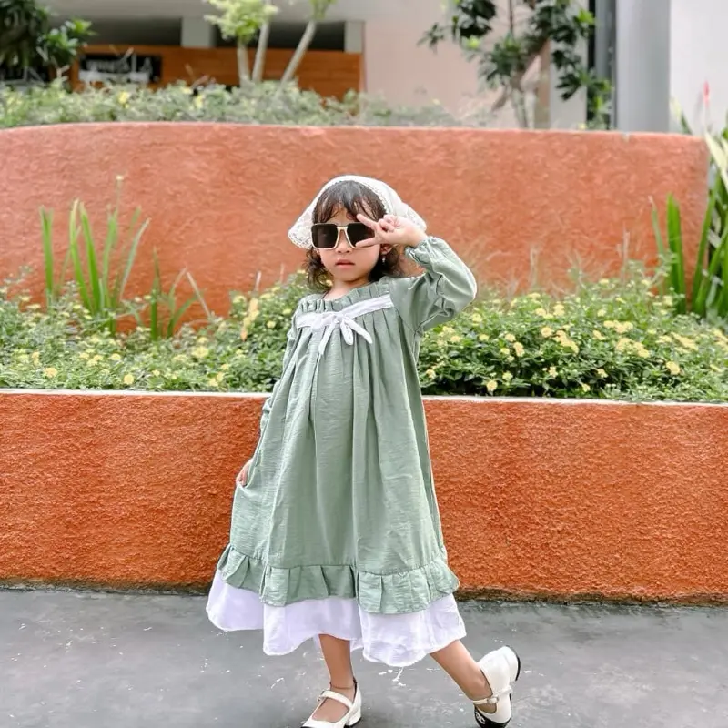 Dress anak dengan lengan panjang model cantik timeless. Bahan pololinen adem,
