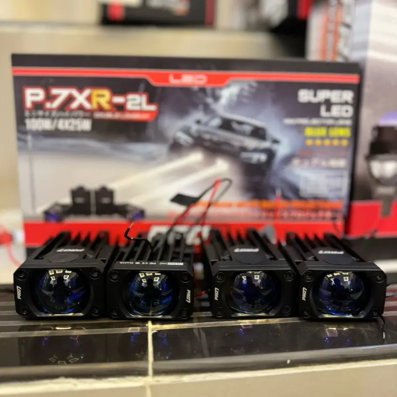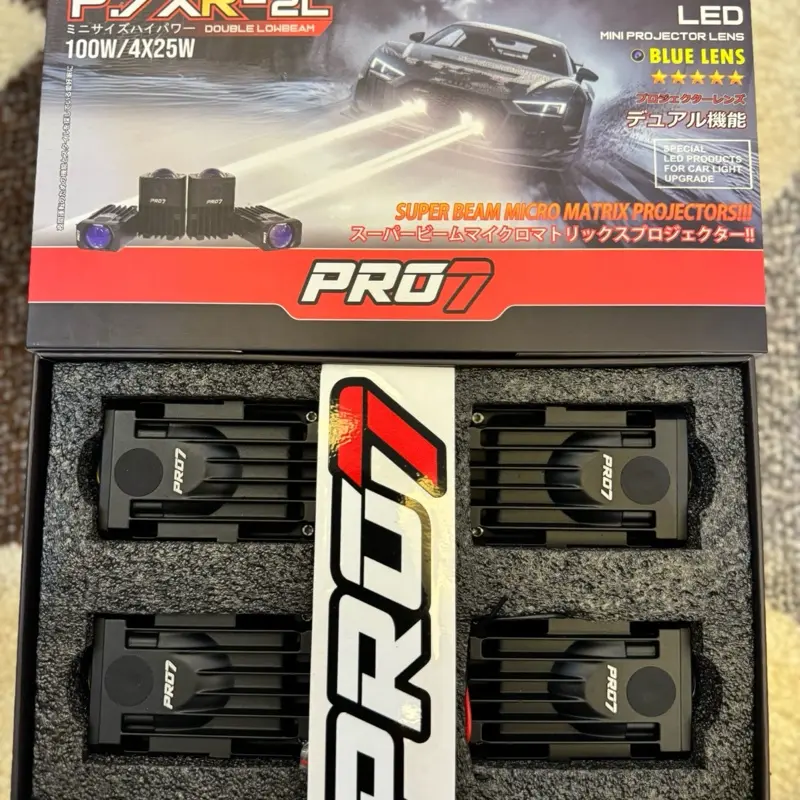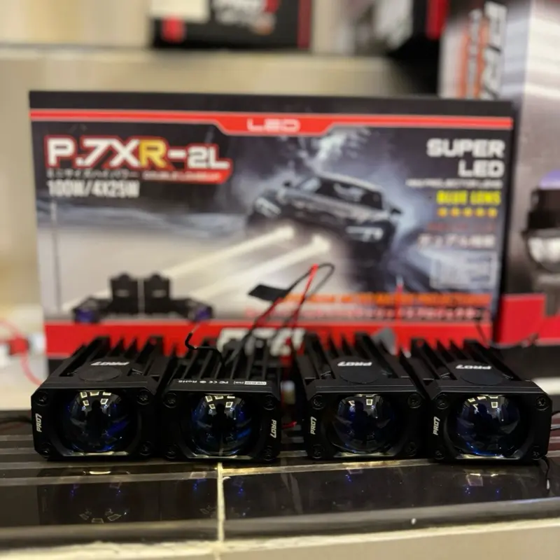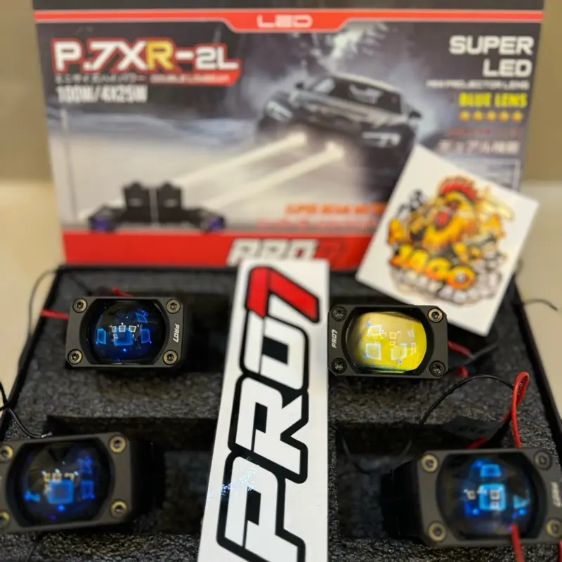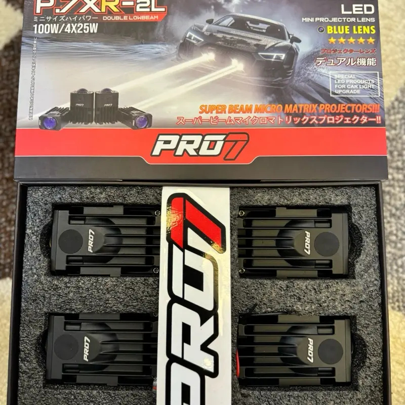 * Lampu mobil LED Super Beam Micro Matrix Projector dengan lens biru. Desainnya waterproof, cocok untuk penggunaan di berbagai kondisi cuaca. Cahaya yang dihasilkan sangat terang, memberikan visibilitas yang optimal.