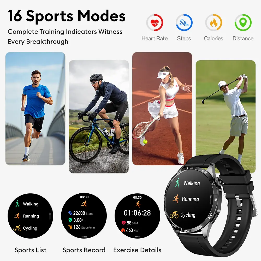 4. Multi-Sport Modes: Mendukung berbagai mode olahraga seperti lari, bersepeda untuk pelacakan aktivitas yang lebih akurat.