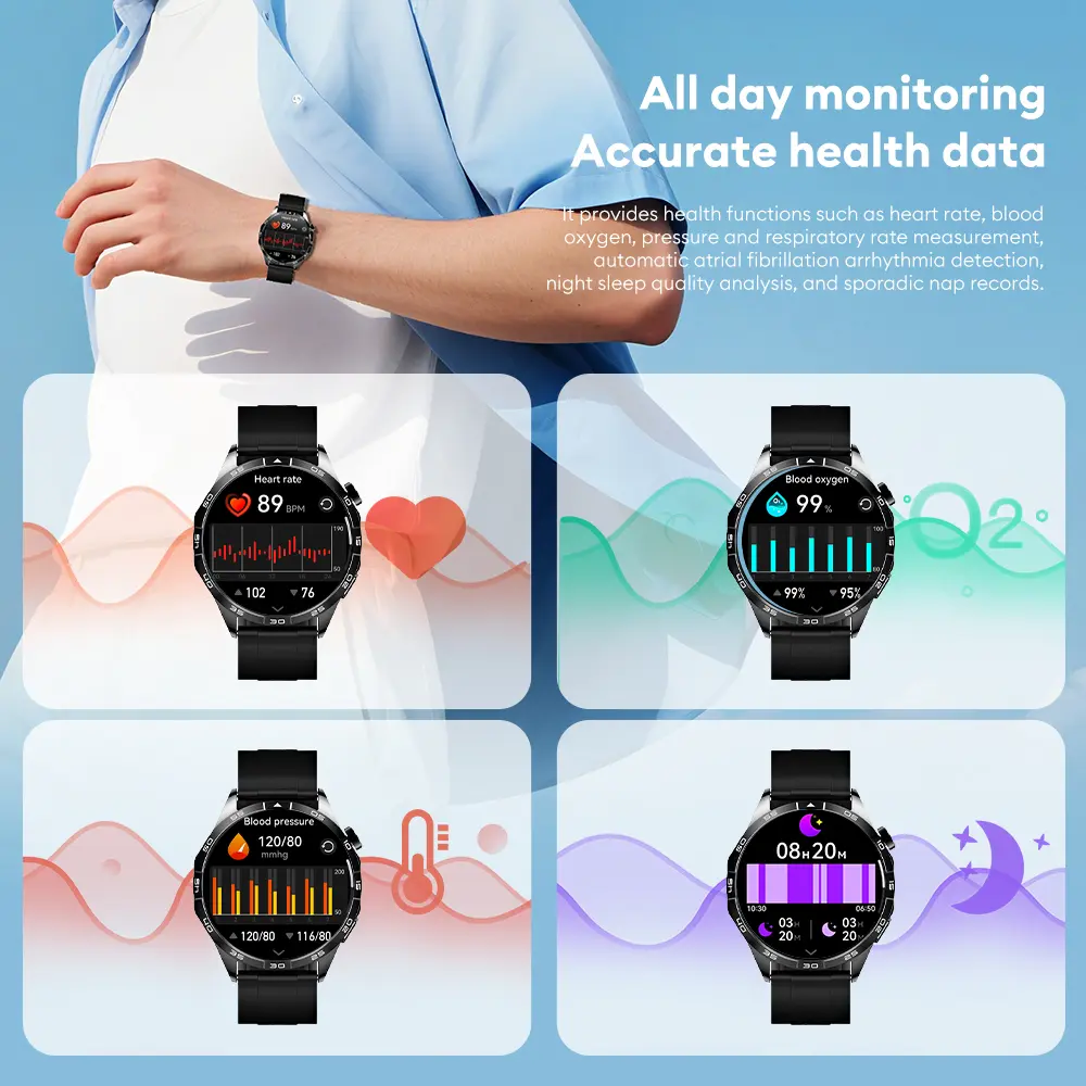 3. Pemantauan Kesehatan: Menyediakan fitur seperti pelacakan detak jantung, pemantauan tidur, dan penghitungan langkah untuk menjaga kesehatan dan kebugaran.