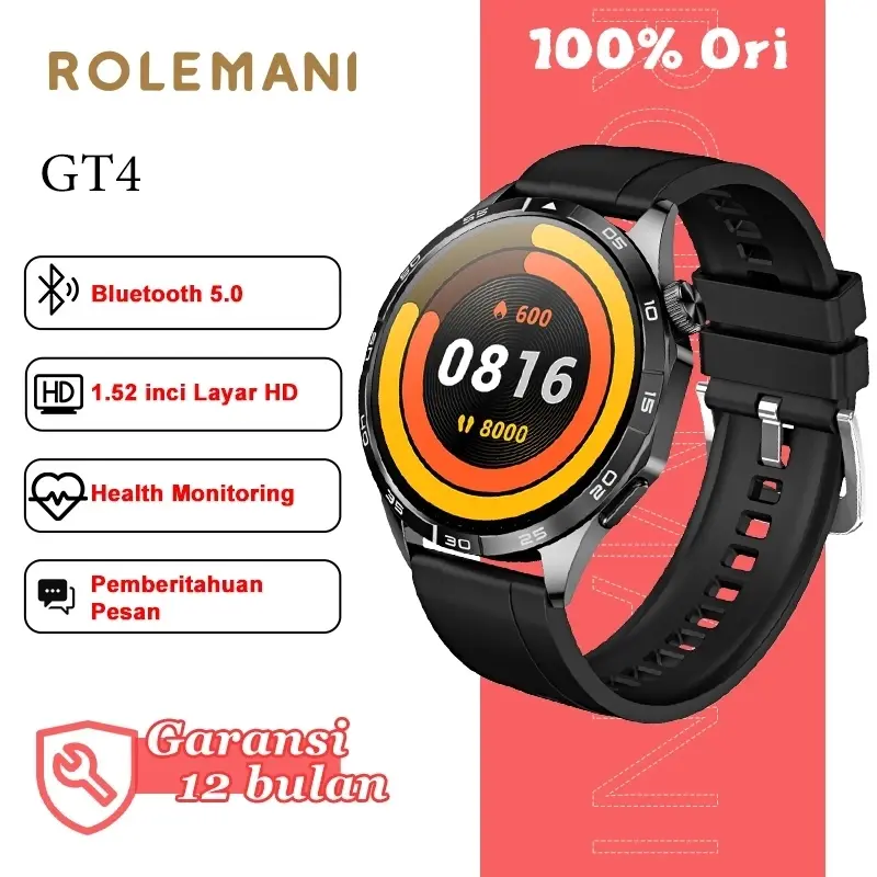 Smartwatch GT4 adalah pilihan ideal bagi mereka yang mencari jam tangan pintar dengan berbagai fitur modern untuk mendukung gaya hidup aktif dan terkoneksi.