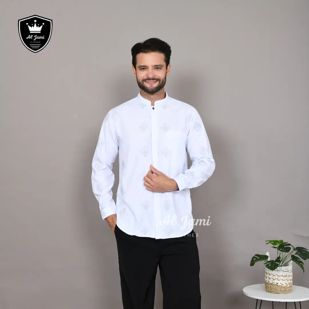5. AL JAMI - ALIF kemeja koko sultan full bordir timbul batik trending lengan panjang manset katun toyobo baju muslim pria dewasa premium formal casual umroh SEO