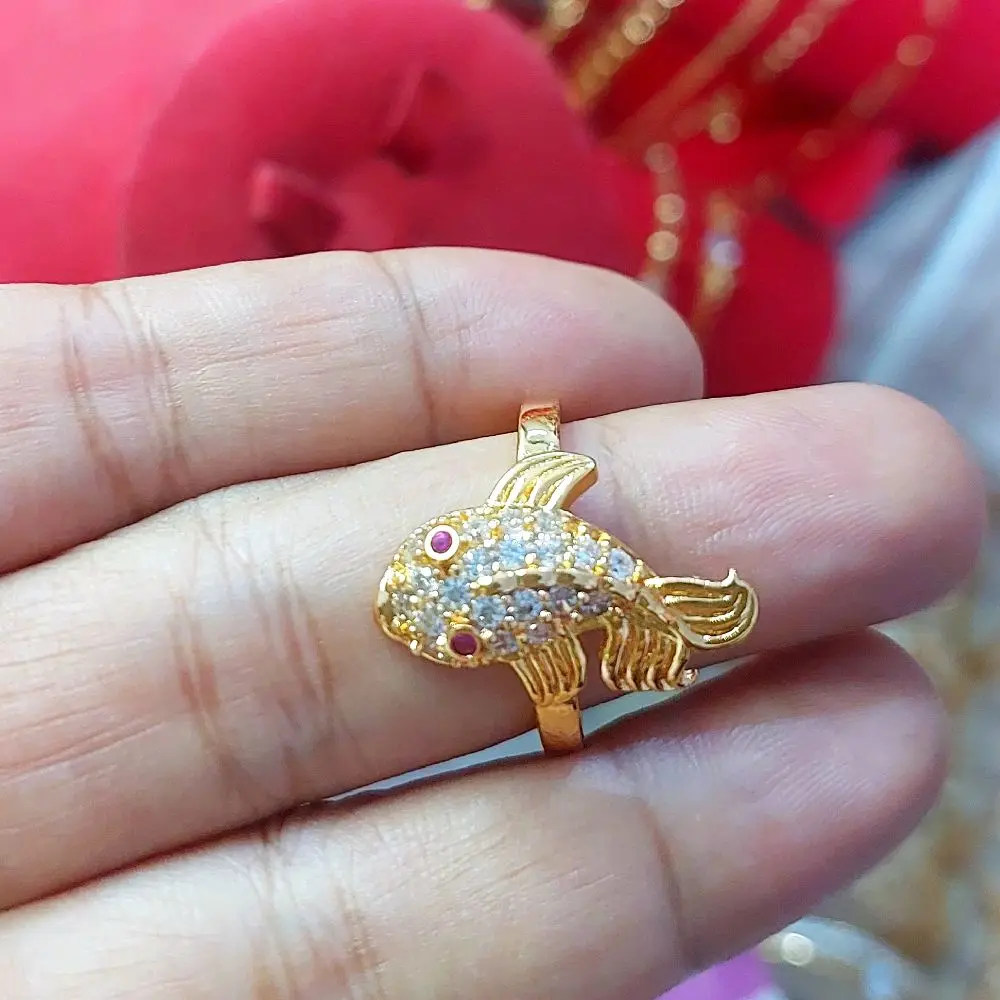 * Cincin ini memiliki desain unik berupa motif ikan lucu. Cocok untuk Anda yang mencari aksesori dengan sentuhan keunikan.