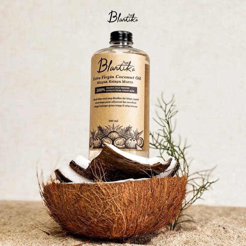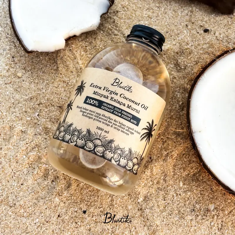 EVCO Blantika diekstraksi dan diolah dari kelapa terpilih dengan Cold Pressed. Proses ini memastikan semua nutrisi tetap utuh. Dengan pengupasan kulit dan pemurnian metode sentrifugal, rasa & aroma EVCO sangat jernih, ringan di telan, dan aroma sedap.