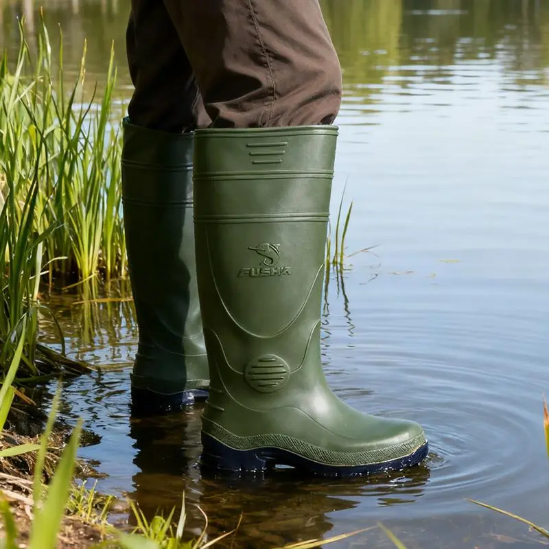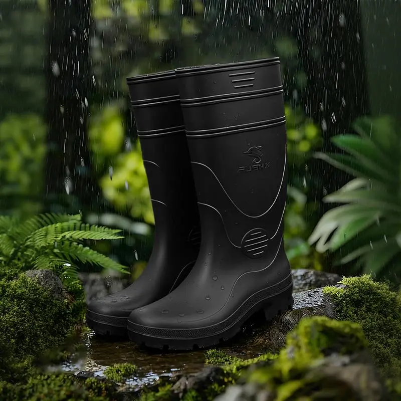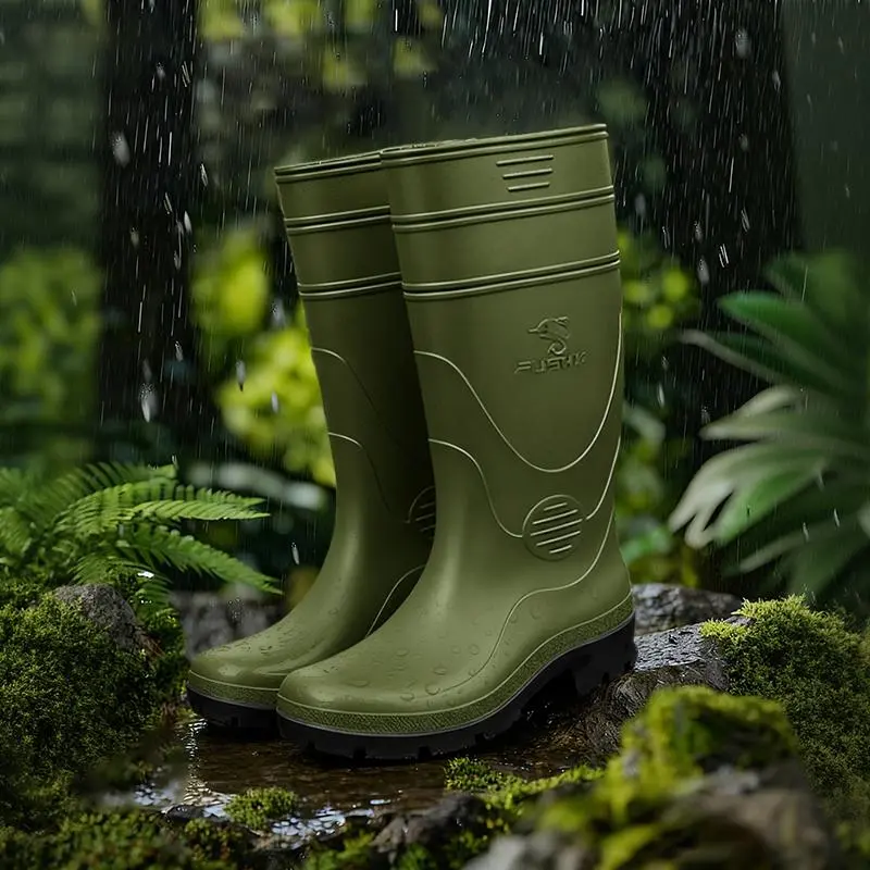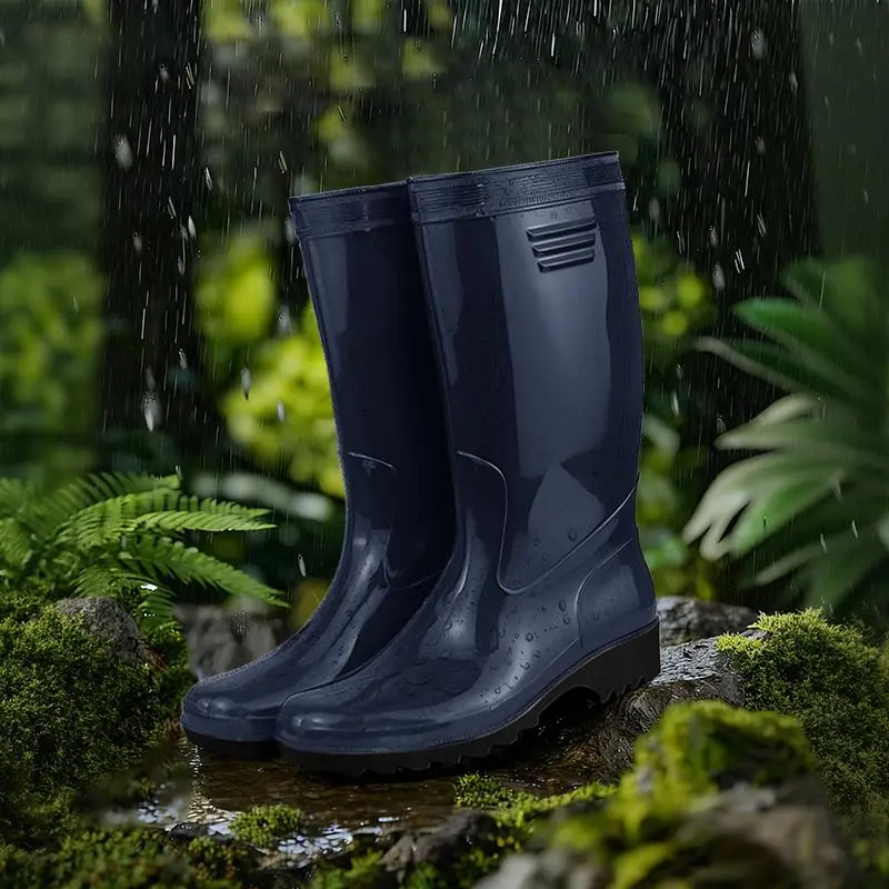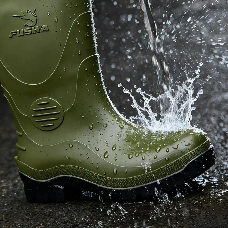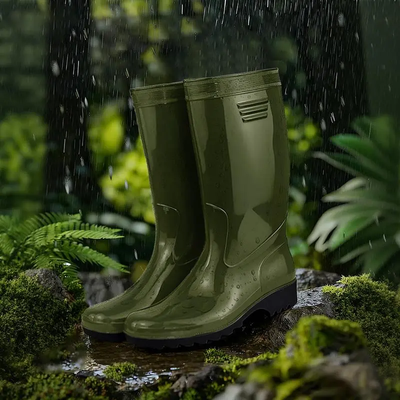Sepatu bot pria model baru, sol tebal anti slip, desain mid-calf, tahan air dan banjir, sepatu kerja karet, cocok dipakai saat musim hujan