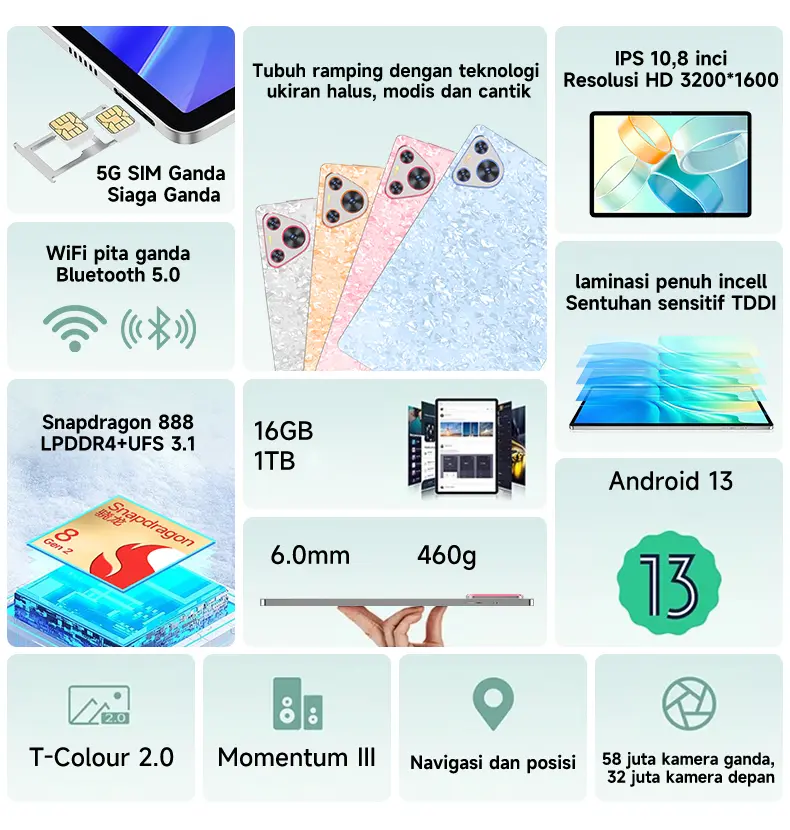 M66 Pro 10.8 inci Android Tablet [16GB + 1TB] 120H Real HDFull Color Desktop Hiburan Kantor | Ultra tipis WiFi KameraPengalaman Profesional HD Cerdas Layar